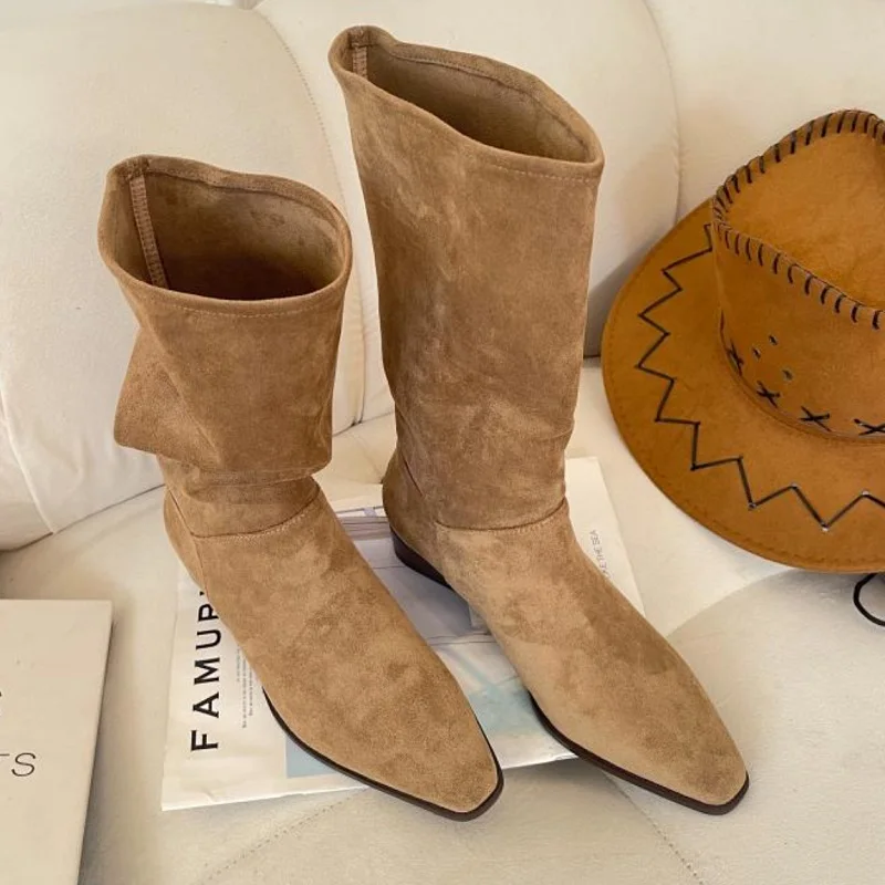 Chaussures Mode Femme 2025 Bottes Casual Femme 2025 - Style Britannique Retro à Semelle Épaise Bottes Plissées Semelle Plate L’hiver 2024 2025 réserve de nombreuses surprises intéressantes sur le plan des tendances de bottes. Que vous soyez adepte de vintage ou amateur de modernité, il y en a pour tous les goûts Bottes: voici les tendances incontournables de l'automne 2025 Confortable, doux, réduit la charge sur les articulations, renforce la tonicité, améliore la posture Bottes tendance pour hoe et fee - Bottes d'hiver classiques... Chaussures de loisirs, chaussures de plage, chaussures de mariage, chaussures de fête, légères et respirantes., Facile à porter., Retirez-le ! Nous avons plus de tailles et de couleurs pour rencontrer votre famille, votre partenaire ou vos amis. Convient pour les promenades en plein air, le divertissement, les loisirs, les fêtes, le travail, les mariages et d'autres occasions, couleur élégante et robuste. Generisch 2025 Bottes tendance pour femme, couleur unie, plissées, style britannique, bottes moyennes à semelle plate