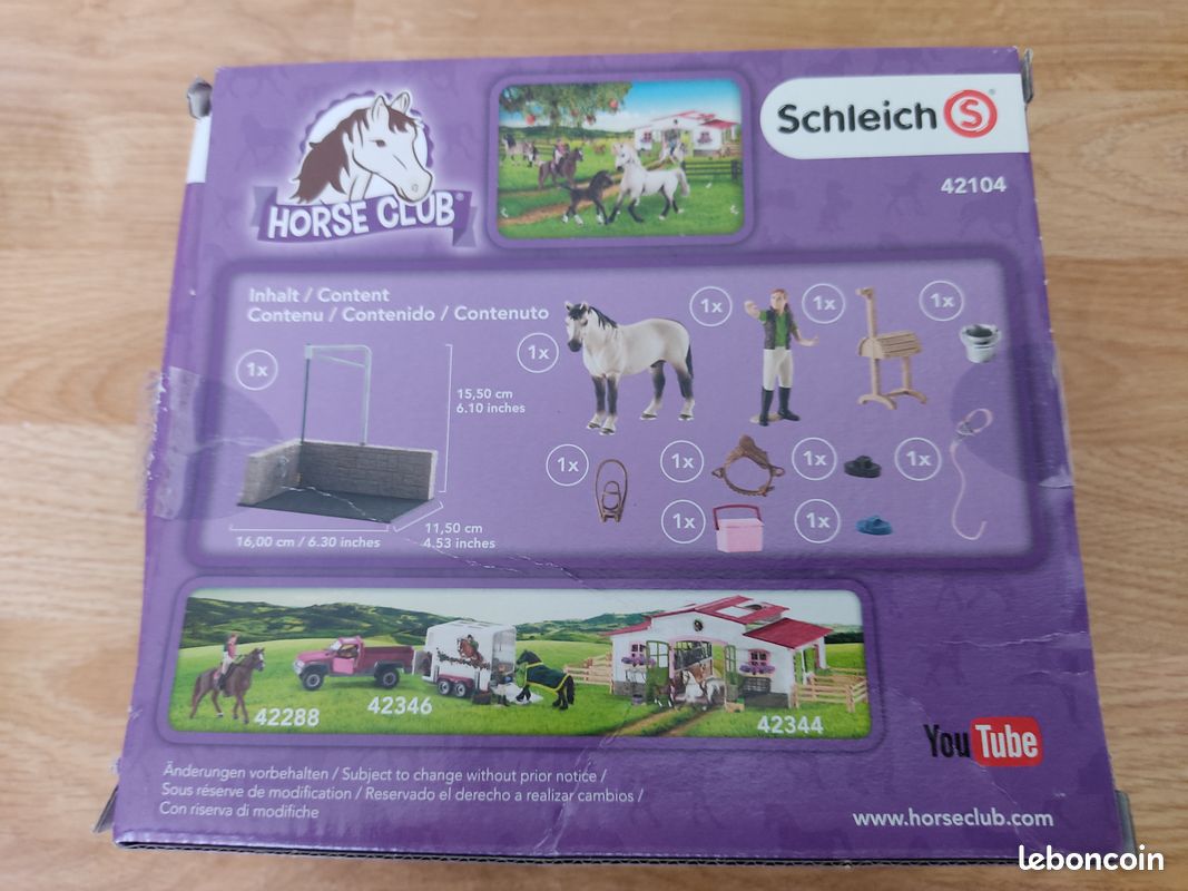 LÀ OÙ LES HISTOIRES COMMENCENT - Nos personnages se déclinent en un million de formes, de tailles et de couleurs. Schleich Cheval Box Lavage Chevaux Avec Figurine Cheval Et Cavalier - Coffret De Lavage De Chevaux De 11 Pieces Avec Cheval Cavalier Et 1395069 700x700 Schleich Box Chevaux C'est pourquoi les vrais amis de chevaux et amies se réjouissent tout aussi bien de laver et de nourrir leur cheval que le cheval lui-même par le soin affectueux de son propriétaire. Principaux points forts · Marque. Schleich · Thème : animaux. Cheval · Thème. Fantaisie, Film · Type de figurine. Figurine · Couleur. Bleue · Matériau. Plastique INITIEZ LES ENFANTS AU MONDE AMUSANT ET CLASSE DE L'ÉQUITATION - Nos modèles de chevaux sont détaillés et authentiques. Ils stimuleront l'imagination des enfants et complèteront à merveille tout ensemble de jouets et de figurines. Lavage de Chevaux de 11 Pièces avec Cheval, Cavalier et Accessoires - Cadeau pour enfants de 3 ans et . UNIVERS ÉQUESTRE INSPIRANT ET ENCHANTEUR - Détaillée... UNIVERS ÉQUESTRE INSPIRANT ET ENCHANTEUR - Détaillée et authentique avec un design fidèle à la réalité, cette station de lavage de chevaux est le complément parfait à toute basse-cour, ferme ou écurie schleich permettant à l'imagination de s'envoler. Détails : design détaillé - Les brosses peuvent être retirées - Contenu de la livraison : 1 station de lavage - 1 étalon Hanovre - 1 toiletteur pour chevaux - 1 seau argenté - 1 licol - 1 boîte de nettoyage - 1 étrille bleue - 1 brosse à card - 1 selle de loisirs - 1 bride. Ensemble idéal pour créer des souvenirs avec toutes les séries de jouets schleich ! Box de lavage pour Chevaux SCHLEICH : la boîte à Prix Risque d'étouffement dû à l'ingestion. Grâce au riche catalogue de fées, de monstres, de dinosaures et de figurines animaux, votre enfant ressentira toute la magie de l'enfance tout en se constituant des souvenirs pour les années à venir.