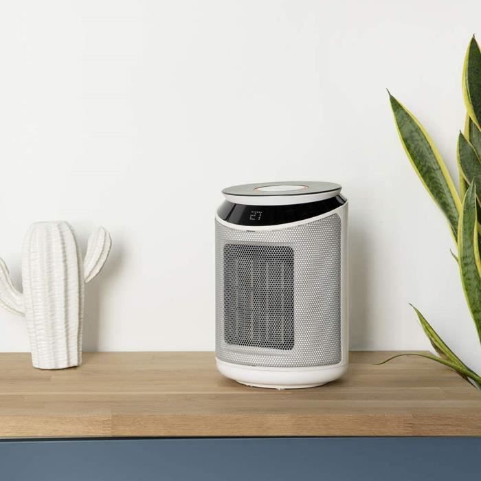 Chauffage céramique portable · Idéal pour 15 m² ou moins · Puissance réglable Eco et Turbo · Thermostat ajustable précis · Fonctionnement ultra silencieux 30 dB... 3 modes de fonctionnement : Eco, Turbo et Cool (fonction ventilateur); il dispose du système de sécurité anti-basculement, un capteur anti-chute qui, en cas de déplacement dans une position inhabituelle ou de chute, l'arrête automatiquement. Protection contre la surchauffe Overprotect System et système AutoOff qui l'arrête automatiquement pour éviter les dommages tant au chauffage qu'à la pièce; adapté à chaque situation; verticalDesign, qui confère au produit une grande stabilité, légèreté, taille réduite et bonne maniabilité. Chauffage Sécurité Basculement Cecotec Chauffage De Table En Céramique ReadyWarm 1500 Max Ceramic Black Radiateur Soufflant Grâce à cet ajustement, la consommation d'énergie est optimisée. Sa technologie Warm Space est capable de chauffer 15 m² de manière efficace; grâce à son système EasyGo, il est facile à transporter; il dispose d'une poignée... Technologie Céramique : émission rapide de chaleur avec efficacité et sécurité ; thermostat réglable avec deux niveaux de puissance. Radiateur De Table En Céramique Cecotec Readywarm 600 Lagoon 2000w Noir