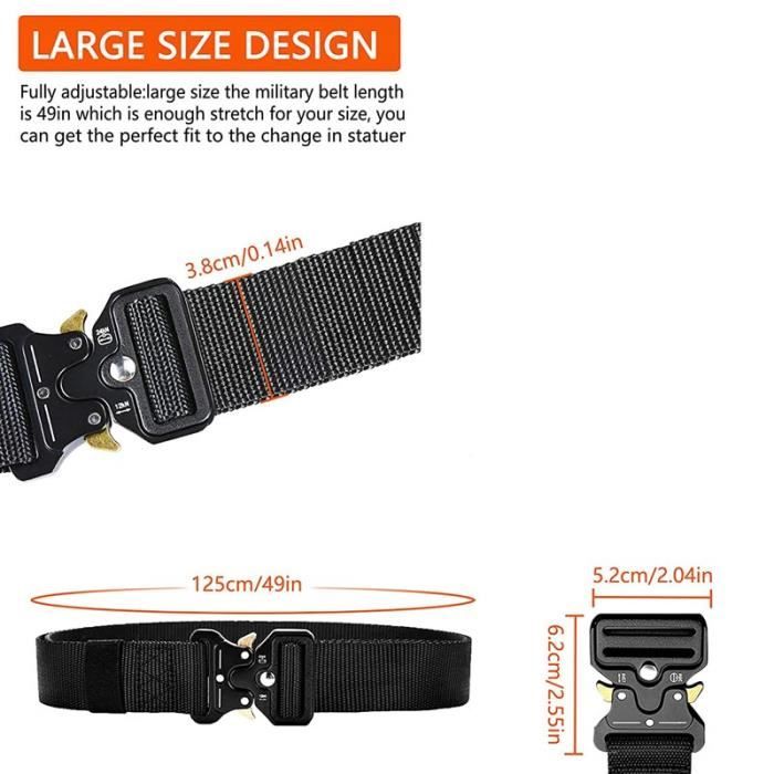 Avec son allure classique et épurée et son design performant, notre ceinture militaire homme est également idéal comme cadeau d'anniversaire pour homme, de fête des pères ou comme cadeau pratique pour vos amis. Ceinture Tactique Ceinture Homme Tactique Militaire En Nylon Réglable Avec Dégagement Rapide Force Magnétique Boucle Dégagement Rapide Alliage Notre ceinture militaire vous offre une expérience de port durable et fiable. Convient à la taille de 30 à 43 pouces, convient à une taille de pantalon inférieure à 45 pouces. Si un seul bouton est enfoncé, la boucle reste connectée et se... Coupe Confortable: Ce ceinture militaire allie fonctionnalité et confort. Le nylon est souple et doux pour la peau, et sa ceinture de largeur standard de 3,8 cm répartit la pression sans comprimer la taille ni frotter la peau. Ceinture tactique militaire - Argent - Nylon - 3.8CMX120CM - Résistante - Unisexe Blanc... Notre ceinture militaire homme s'associe facilement à divers pantalons pour une silhouette soignée. Que vous soyez mince ou costaud, vous pouvez l'ajuster à la longueur qui convient à votre taille en un simple geste. Le ceinture tactique épouse naturellement la taille, offrant un maintien stable pour un confort optimal dans tous vos mouvements. Ceinture et boucle,Ceinture militaire tactique réglable pour hommes,ceintures durables,sports de Plus besoin de vous soucier d'une taille inadaptée. Idéal pour Offrir ou pour un Usage Personnel: Ce ceinturon tactique est non seulement adapté à un usage quotidien, mais aussi idéal pour les activités professionnelles telles que les aventures en plein air et l'entraînement tactique.