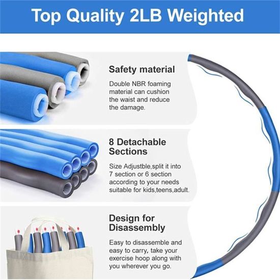 Cerceau de gymnastique,Anneau de gymnastique pour adultes,anneau de... 【Dimensions idéales】: Avec une circonférence de 180 cm/70,87 pouces, ce cerceau abdominal lesté est conçu de manière compacte pour une portabilité légère 【Large applicabilité】: Adapté aux hommes et aux femmes, cet équipement d'entraînement est idéal pour une utilisation à la maison, au bureau ou en Anneau Lesté Abdos Cerceau De Fitness Lesté 1,4 Kg, Noir Cerceau Pliable Maison 【Conception peu encombrante】: Doté d'une structure pliable, cet anneau d'exercice peut être facilement rangé lorsqu'il n'est pas utilisé sans prendre beaucoup de place Matériau]: Ce cerceau est fabriqué en PVC et avec un ressort métallique lesté interne, empêche la casse, s'adapte parfaitement à la taille, permettant une utilisation prolongée sans causer d'inconfort ni de blessure - 【Conception peu encombrante】: Doté d'une structure pliable, cet anneau d'exercice peut être facilement rangé lorsqu'il n'est pas utilisé sans prendre beaucoup de place - 【Dimensions idéales】: Avec une circonférence de 180 cm/70,87 pouces, ce cerceau abdominal lesté est conçu de manière compacte pour une portabilité légère - 【Large applicabilité】: Adapté aux hommes et aux femmes, cet équipement d'entraînement est idéal pour une utilisation à la maison, au bureau ou en Spécification: - Matériau : ressort et tissu Tableau de taille: - Circonférence 180 cm/70,87 pouces - Épaisseur 2,2 cm/0,87 pouce Le forfait Comprend: 1 cerceau de fitness souple Note: Veuillez prévoir une légère marge d'erreur de 1 à 2 cm/0,39 à 0,79 pouce en raison de la mesure manuelle. Anneau de Hula - VGEBY - Cerceau d'exercice - 1,5kg - Fitness - Mixte