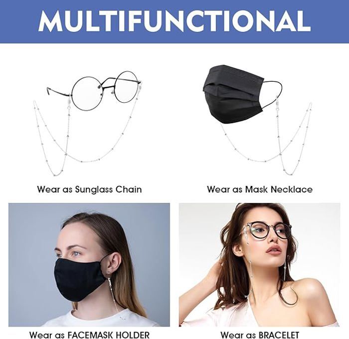Cordon Chainette HENRI BEAUD Universel Pour Toutes Les Lunettes Adultes De Couleur Ecaille Ulvy Cordon lunettes chainette en livraison gratuite | Chaine de lunette Chaine Pour Lunette 4 Pack Chaîne De Lunettes Pour Les Femmes Porte-lunettes Autour Du Cou Chaîne Anti-perte Lunettes La boucle en silicone avec glissement limité empêche la chute de votre lunette,ne la perdez plus jamais Taille Adaptée: La longueur de la chaîne de lunettes est de 70 cm,environ 27,56 pouces,son diamètre est de 2 mm et son poids est de 6 grammes,très confortable à porter autour du cou Matériel Excellent: La chaîne de lunettes légère et belle est fabriquée à partir de cuivre fin et de technologie avancée,ne provoquant aucune allergie et ne blessant pas votre peau. La boucle en silicone avec glissement limité empêche la chute de votre lunette,ne la perdez plus jamais Parcourez notre sélection de femme chaîne de lunettes : vous y trouverez les meilleures pièces uniques ou personnalisées de nos boutiques La qualité est très bonne,pas facile à casser et peut être portée longtemps Article de Mode: La chaîne de lunettes classique pour femme en or/argent est une excellente option pour la combiner avec vos lunettes de vue,de soleil et de lecture,et vous pouvez également l'utiliser avec votre masque,parfaite pour les centres de mode à toutes les occasions Cadeau Parfait: La légère chaîne de lunettes pour femme est emballée individuellement,vous pouvez la donner à votre mère,votre bien-aimée,votre grand-mère et autres membres féminins de la famille et amis. Taille Adaptée: La longueur de la chaîne de lunettes est de 70 cm,environ 27,56 pouces,son diamètre est de 2 mm et son poids est de 6 grammes,très confortable à porter autour du cou Cadeau Parfait: La légère chaîne de lunettes pour femme est emballée individuellement,vous pouvez la donner à votre mère,votre bien-aimée,votre grand-mère et autres membres féminins de la famille et amis. Article de Mode: La chaîne de lunettes classique pour femme en or/argent est une excellente option pour la combiner avec vos lunettes de vue,de soleil et de lecture,et vous pouvez également l'utiliser avec votre masque,parfaite pour les centres de mode à toutes les occasions