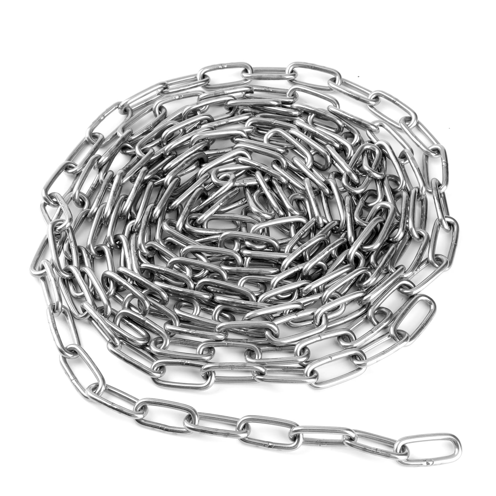 4-mètre 5-mm d'épaisseur chaîne en acier inoxydable V4A lien longue de NietFullThings en un seul morceau anchor chain DIN 5685 DIN 763 4-m Il ne rouille pas et ne se déforme pas facilement et peut être utilisé même dans des conditions extérieures difficiles. Chaîne Inox 304 Hamac Suspension Chaîne En Acier Inoxydable 304 Solide Et Soudé - Longueur : 1 M - Anneau De 1,2 à 10 Mm - Long Anneau : 8 Mm Chaîne Métallique Lourde Extérieur Acier inoxydable de qualité supérieure - Chaque chaîne métallique est fabriquée en acier inoxydable 304 et conçue pour résister aux éléments et supporter de lourdes charges. Chaîne pastilles 4mm au mètre Chaine de 1 mètre 3 mm Acier inoxydable DIN5685A LONG Chaîne à... Polyvalent : que vous accrochiez des hamacs, des sacs de sable, du linge ou des balançoires, cette chaîne en acier inoxydable de 4 mm est idéale pour une variété de besoins de suspension et de sécurité. Construction robuste - La chaîne en acier a une épaisseur de 4 mm. Il est également idéal pour construire des barrières ou sécuriser des objets en place. La chaîne en acier inoxydable convient à une large gamme d'applications, y compris les hamacs, les sacs de sable, les pots de fleurs, les balançoires et bien plus encore. Avec une capacité de charge allant jusqu'à 200 kg, il offre un maintien stable et sûr pour vos biens. Description du produit Fabriqué en acier inoxydable 304 de haute qualité, ce qui garantit une longue durée de vie et une résistance à la corrosion.