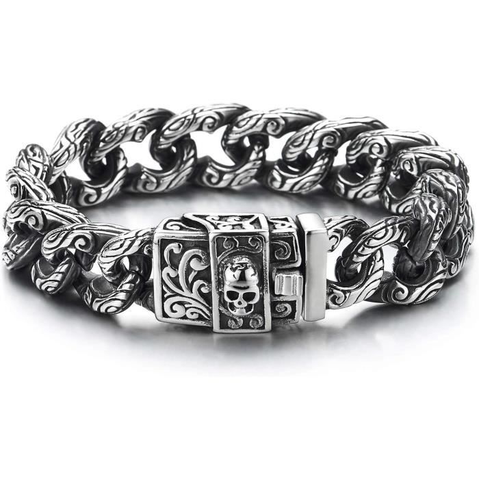 Chaîne Byzantine Carré Tressé Chaîne Maillons Bracelet Pour Homme *Traitement de surface : poli et brossé * Taille : longueur de la chaîne : 21,5 cm (8,46) ; largeur de la chaîne : 2 cm (0,79 pouces) *Poids : 133,0 g Bijou Masculin Style Robuste ChainsPro Gourmette Homme Acier Inoxydable-19cm Bracelet Grosse Maille Bijou Homme Cadeau Anniversaire *Couleur du métal : argenté., *Code : MB-1436., *Métal : acier inoxydable. COOLSTEELANDBEYOND Homme Grand Acier Inoxydable Chaîne Gourmette Bracelet AVCE Fleur de Lis et Crâne, Gothique Biker, Poli Mirro, One Size, Acier inoxydable Métal, not-applicable : : ModeNous nous efforçons de protéger votre sécurité et votre vie privée. Notre système de paiement sécurisé chiffre vos données lors de la transmission. Nous ne partageons pas les détails... Gourmette bracelet homme en acier inoxydable couleur or doré. - Achat... Traitement de surface: Poli Mirro 22CM Grande Style Masculine - Acier Inoxydable Bracelet Homme Chaîne Gourmette, Poli Paquet: Boîte à bijoux avec Marque Nom COOLSTEELANDBEYOND Dimensions : 20 mm de largeur x 22 cm de longueur x 6,3 mm d'épaisseur., Poids : 135,8 g. Métal: Acier Inoxydable * Couleur du métal : noir., *Code : MB-581., Matériau : acier inoxydable.