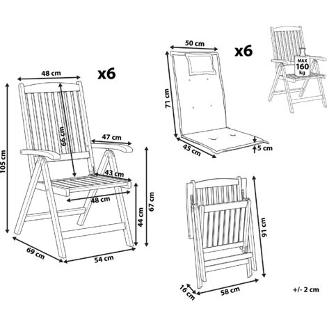Bois Acacia Huilé Sans Assemblage Chaise De Jardin Acacia Massif Foncé Sikash | Leroy Merlin Chaise Sans Assemblage Prête à L'emploi Beliani Mesa Y Sillas De Jardín AMANTEA Madera De Acacia 6 Personas Gris 90673426 Chaises de Jardin Pliables et Inclinables Accoudoirs en Bois d'Acacia... Elle est fabriquée en bois d'acacia résistant aux UV et nécessite peu d'entretien. Grâce à son dossier réglable, elle est pliable, ce qui permet de gagner de la place. Détails: Type de produit: Mobilier pliable Style: Rustique Couleur principale: Bois foncé Type de matière: Bois Matière principale: Acacia Matière secondaire: Acier Matière du piétement: Bois Matière de l`assise: Bois Parties ajustables: Dossier Accoudoirs: Oui Finition: Huilé Pliable: Oui Empilable: Non Dimensions: Dimensions des accoudoirs: 67 cm Profondeur: 69 cm Hauteur du siège: 44 cm Largeur: 54 cm Hauteur: 105 cm Surface d`assise: 48x43 cm Poids: 10 kg Charge admise: 160 kg L`offre inclue: 1 x Chaise Caractéristiques clés: Style intemporel, En harmonie avec n'importe quel type de décoration, Design moderne et la qualité assurant la durabilité, Pour préserver la qualité du produit, il faut le protéger de l'eau et de la pluie. Ajoutez une touche classique à votre espace extérieur avec cette chaise de jardin. Empilable, pratique pour avoir un espace supplémentaire, Matière naturelle Informations d`assemblage: Ne nécessite pas d'assemblage Grande durabilité et résistance aux UV et aux changements climatiques grâce aux matériaux utilisés Le dossier inclinable est pratique et la chaise est pliable ce qui permet de la ranger facilement Fait en bois et doté de lattes, il vous offre un dossier inclinable et des accoudoirs spacieux et confortables. Pour bien vous sentir dans vos espaces extérieurs, assurez-vous que vos meubles de jardin reflètent vos préférences en matière de style et qu'ils s'harmonisent avec le décor de votre maison