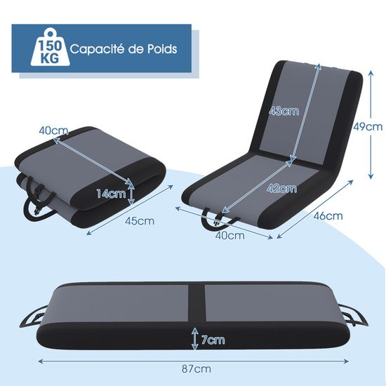 GOPLUS Coussin de Sol Reglable en 5 Positions, Chaise Japonaise Pliable, pour Salon, Bureau, Cafe/Noir/Gris (Brun La chaise de sol GOPLUS est une chaise pliante réglable sur 14 niveaux, recouverte de velours corail. Elle promet un confort optimal pour la lecture, la méditation, le travail ou tout simplement la détente Coussin Sol Fauteuil Sol Dossier Réglable Chaise De Sol Pivotante GOPLUS - Dossier 3 Positions, Accoudoirs 5 Niveaux - Pliable Sans Montage - Gris Fauteuil Sol Pliable GOPLUS Chaise De Sol Confortable Dossier Haut Confort Rembourré : Rembourré avec une éponge haute densité de 7 cm, ce coussin de siège offre un soutien doux et un confort pendant de longues heures d'assise. Réglage à 6 Niveaux : Doté d'un dossier réglable à 6 niveaux, ce siège de stade inclinable vous permet de trouver l'angle parfait pour regarder des matchs de football palpitants ou profiter de concerts paisibles en plein air. RELAX4LIFE Chaise de Sol Pliante avec Dossier Réglable en 6 Positions... De plus, le tissu Oxford résistant assure respirabilité et durabilité. La position plate à 180° est incluse. Les boucles de fixation fixent facilement le coussin dans sa position pliée. Support Dorsal Confortable : Conçu avec un dossier haut, ce coussin offre un excellent soutien lombaire, vous permettant de vous sentir à l'aise pendant toute la durée de l'événement.