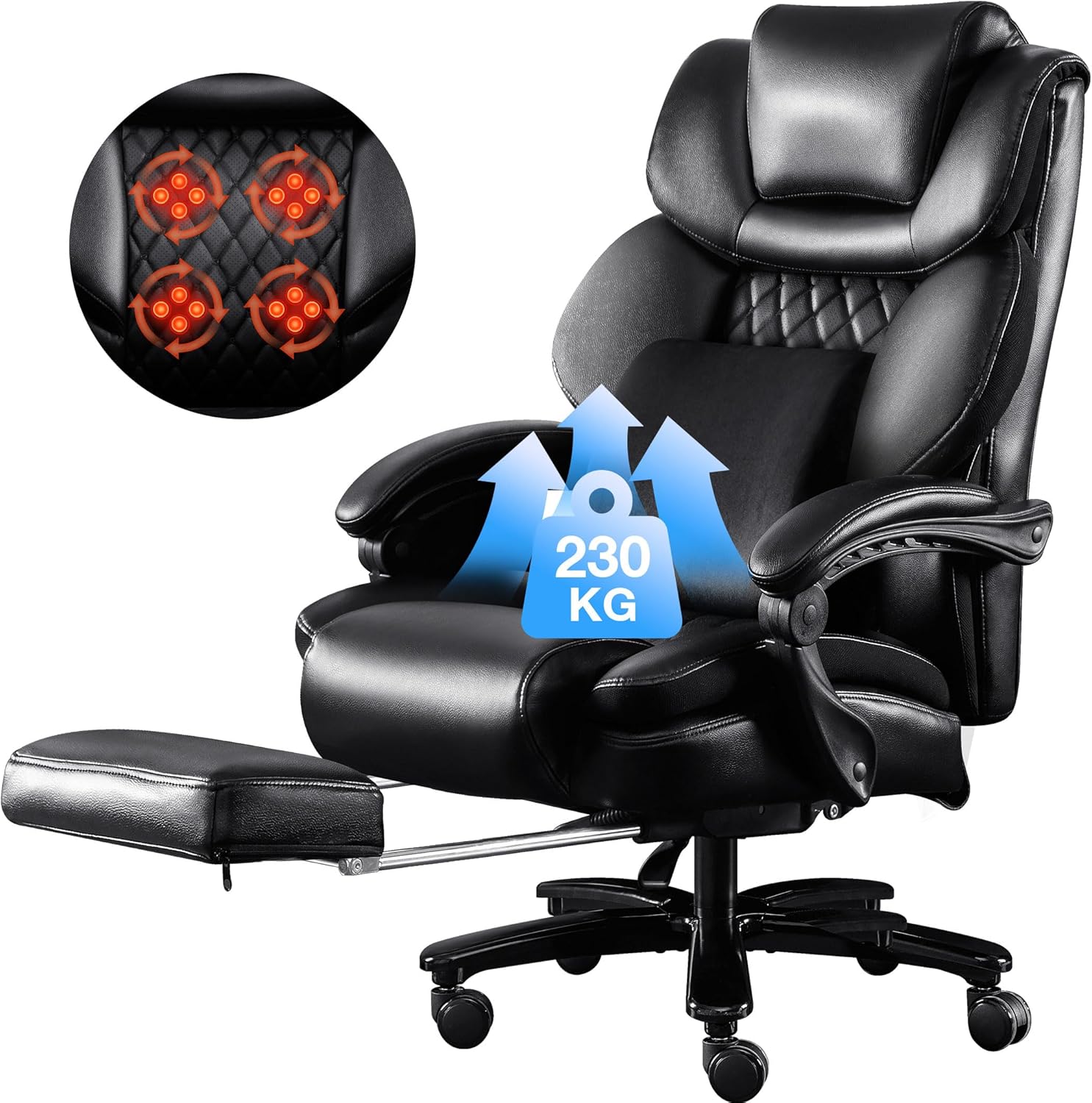 Chaise De Bureau Ergonomique Chaise Ergonomique Chaise En Maille Avec Accoudoirs Réglables Et Soutien Lombaire Fauteuil Haute Fauteuil De Direction Kasorix Fauteuil de Direction de Bureau Cuir Grand et Haut avec Fauteuil de bureau Victoria cuir - avec accoudoirs, appui-tête et soutien lombaire - Mécanisme... 【Inclinaison à trois niveaux – Travail, détente, sieste】Cette chaise de bureau inclinable avec repose-pieds offre trois angles d’inclinaison : 97°, 107° et 122°, pour s’adapter à tous vos besoins. Grâce à son système de blocage sécurisé, cette chaise de direction vous assure un confort stable tout au long de la journée. Idéal pour améliorer la posture et réduire la fatigue, ce siège de bureau avec soutien lombaire est parfait pour les longues heures de travail. 3 Couleurs Au Choix 【Base métallique renforcée et roulettes silencieuses】Conçue pour durer, cette chaise de bureau en cuir PU est équipée d’une base métallique robuste supportant jusqu’à 227 kg. Ses roulettes silencieuses de 75 mm permettent des déplacements fluides sans rayer le sol. 【Design exécutif élégant et fonctionnel】Cette chaise de bureau en cuir brun allie élégance classique et ergonomie moderne. Offrez-vous un confort optimal au travail avec nos chaises ergonomiques ajustables. Soutien lombaire, réglages personnalisés et design moderne pour vos longues journées au bureau ou en télétravail
