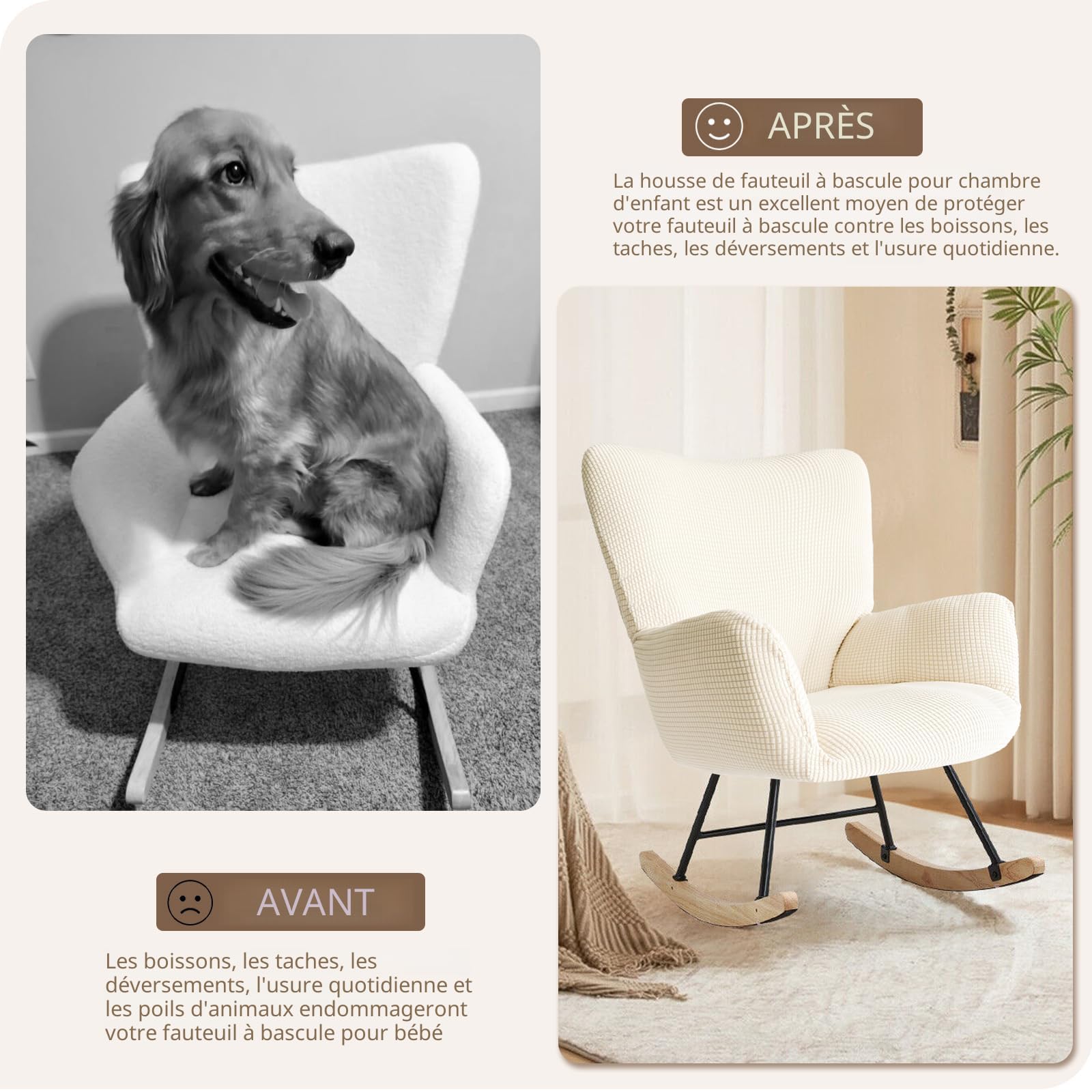 Extensible pour un ajustement parfait : Le tissu de cette housse de fauteuil à bascule est très élastique, ce qui lui permet de s'adapter à la plupart des tailles de fauteuils à bascule pour enfants. Grâce à son tissu extensible, cette housse s'adapte parfaitement à votre fauteuil. De plus, les élastiques sous la housse la maintiennent fermement, sans plis. Évitez l'eau de Javel et le repassage pour préserver l'intégrité du tissu. Longueur de l'assise : 58,9 à 66 cm. CHAISE SALLE À Manger Housse Jacquard Étui Extensible Siège Coussin Housse Neu * EUR 10,18... Utilisez de l'eau froide et une lessive douce, puis séchez à l'air libre ou au sèche-linge à basse température. Utilisez de l'eau froide et un détergent doux, puis séchez à l'air libre ou au sèche-linge à basse température. Fabriquée en tissu jacquard de qualité supérieure, composé à 92 % de polyester et à 8 % d'élasthanne, cette housse est douce, confortable, agréable au toucher et texturée. Housse Extensible Jacquard Housse De Chaise Extensible Jacquard Blanc | 1001 Housses Housse Ajustable 58-66 Cm Housse de Chaise Impermeable Extensible Jacquard Amovibles Lavables pour Salle à Manger Hôtel... Entretien facile : Lavable en machine pour plus de commodité, cette housse extensible pour fauteuil à bascule conserve sa forme après plusieurs lavages. Tissu haut de gamme : Fabriquée en tissu jacquard haut de gamme, composé à 92 % de polyester et à 8 % d'élasthanne, cette housse de chaise à bascule pour chambre d'enfant est douce, confortable, agréable au toucher et texturée. Longueur de l'assise : 58-66 cm, largeur de l'assise : 39-50 cm, hauteur du dossier : 48-58 cm. Séchage rapide et infroissable, elle vous fera gagner du temps et de l'énergie. Valeurs des doublures de lit. : Excellente qualité Housse De Chaise Extensible Jacquard Même après une utilisation prolongée et des nettoyages répétés, elle conserve son aspect neuf. Hauteur du dossier : 48,9 à 58,9 cm. Lavable en machine pour plus de commodité, cette housse extensible conserve sa forme après plusieurs lavages. Largeur de l'assise : 39,9 à 50 cm.