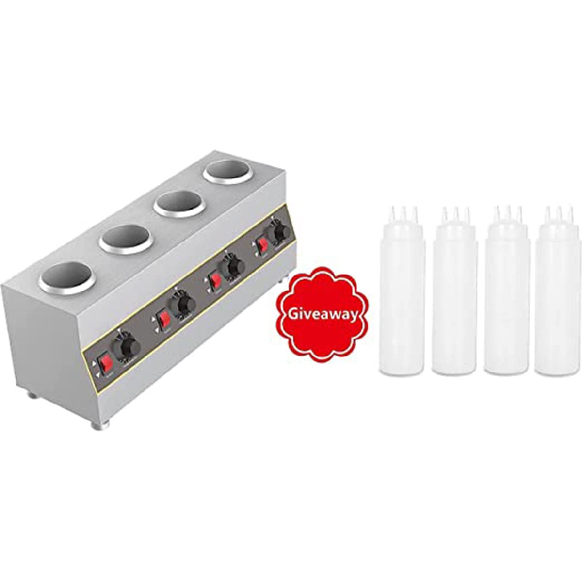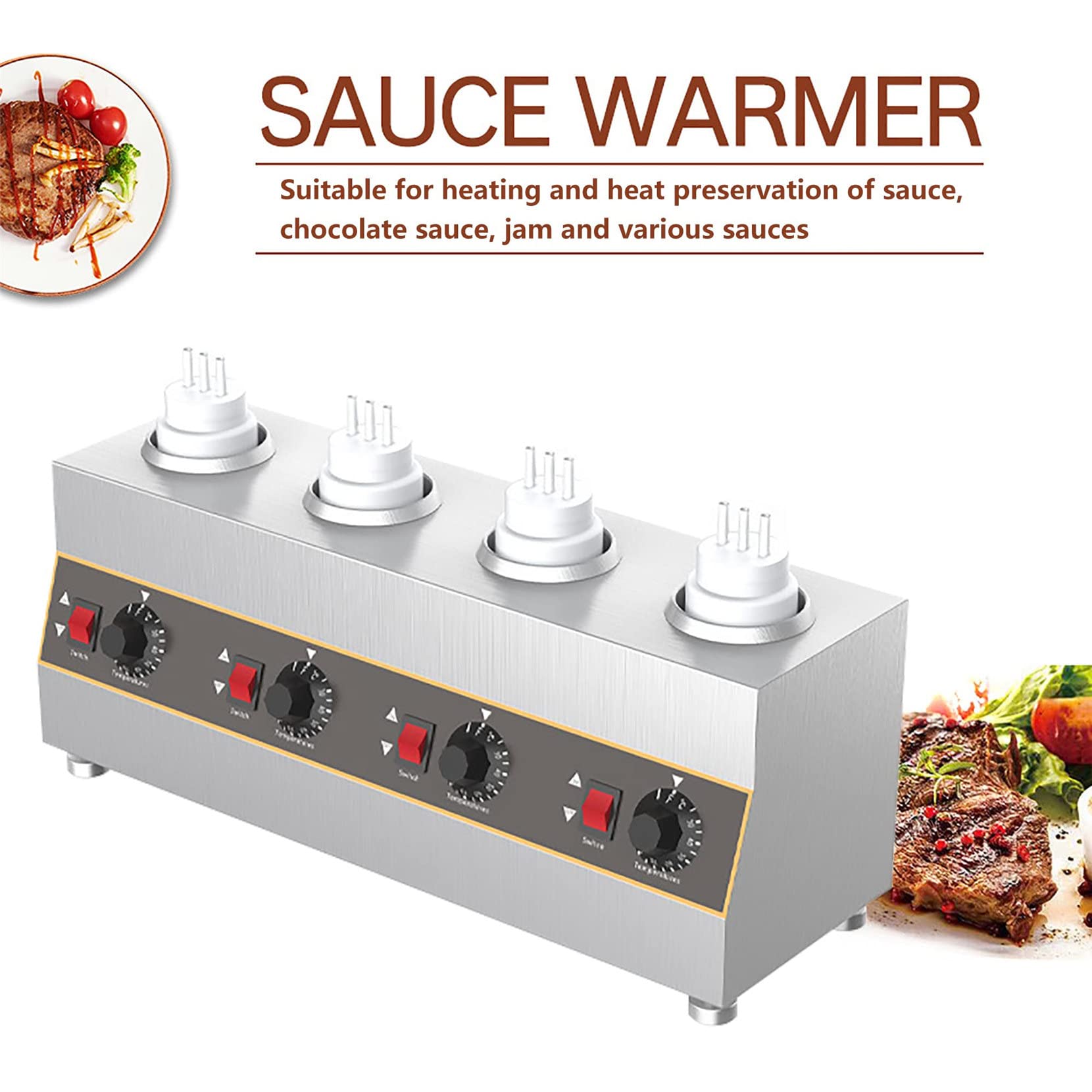 Température Réglable 30-85°C Machine Conservation Chaleur Sauces Chauffe-sauce Électrique 4 équipement Cuisine Traiteur 2 Casserole Chauffe-soupe électrique Chauffe-sauce en acier inoxydable 8L Chauffe sauce bouteille 1 x 1 litre panneau de commande au dessus acier... Tension : 220 V-240 V/50 Hz., Puissance : 240 W. Température : 30 °C à 85 °C. Dimensions du produit : 40 x 25 x 22 cm. Description : Nom : chauffe-sauce Matériau : acier inoxydable. Remarque : ce chauffe-sauce ne peut chauffer que des choses liquides, ne peut pas faire fondre le chocolat ou le fromage., Nettoyage et entretien. Le nettoyage doit être effectué lorsque l'appareil est éteint et débranché. Veuillez utiliser uniquement un chiffon humide non abrasif., Contenu : 1 chauffe-sauce., 3 bouteilles. 5L thermos électrique entièrement automatique mais... – Grandado