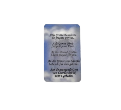 TOURISTIC MEDALS Médaille touristique, Sanctuaire Notre Dame de Lourdes fme_6658 Conçue pour les pèlerins du monde entier, cette carte contient la prière à Notre-Dame de Lourdes en six langues : français, anglais, italien, allemand et néerlandais. Grâce à son format multilingue, cette carte de prière est un support idéal pour la prière personnelle ou communautaire Cadeau Catholique Lourdes Chapelet D'eau De Lourdes Avec Perles De Cristal De Bohême Et Bouteille Eau Sainte Lourdes 8,5 Cm Bouteille plastique Lourdes contenant de l'eau de Lourdes. Veuillez noter que ce produit n'est pas consommable et non remboursable. Chapelet de Lourdes en Perles de Cristal Vert - 50 cm | La Boutique des... Tous nos cadeaux d'eau de Lourdes sont authentiques et remplis d'eau bénite de Lourdes du printemps à la grotte. Bouteille d'eau sacrée de Lourdes contenant de l'eau de Lourdes Avec carte de prière de Lourdes par Catholic Gift Shop Ltd Hauteur de la bouteille : 8,5 cm