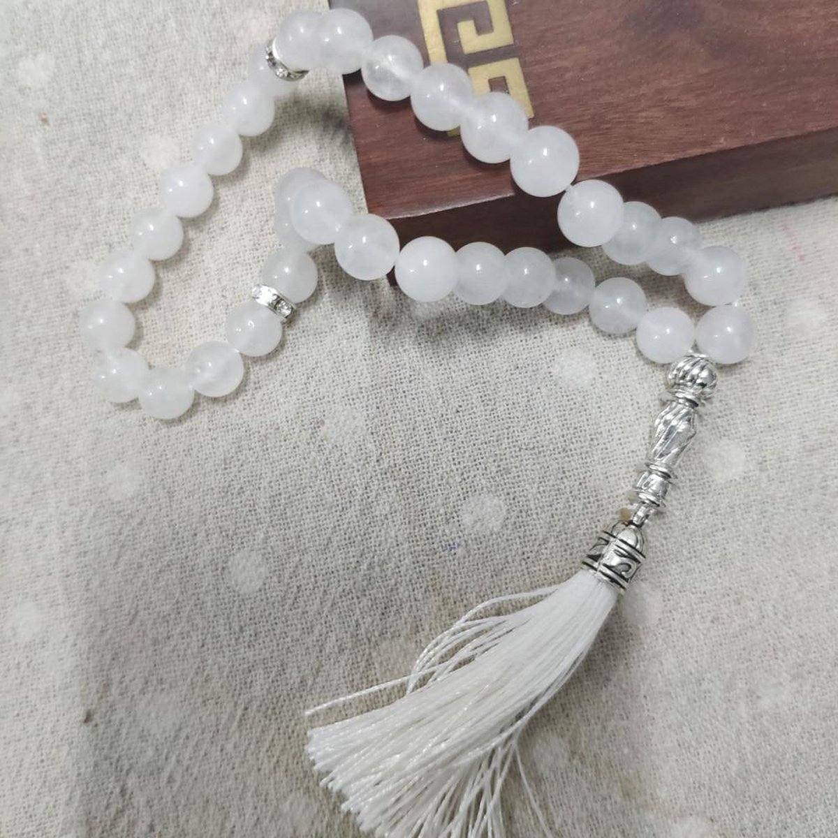 Tasbih / Sebha / Chapelet Musulman - Expedié sous 24h | TASB77 - 2,50 VINGVO Perles de chapelet musulman Chapelet musulman Couleurs vives... Accessoire Spirituel Islam Dévotion Tasbih 33 Perles Style Cristal | Chapelet Islamique Élégant Pour Femme Avec Pochon Organza – Imane & Qalam Chapelet Musulman Blanc Argenté Description du produit Plongez dans un moment de spiritualité prolongé avec ce tasbih musulman 99 perles blanc et argenté, un chapelet islamique long idéal pour réciter le dhikr, faire vos invocations (duas) et approfondir votre recueillement. Avec ses 99 grains, ce collier de prière est parfait pour un usage quotidien à la maison, à la mosquée ou durant les moments de méditation. Chapelet musulman - SHIPENOPHY - Perles en résine - Couleurs vives... Les perles rondes en résine sont finement décorées de motifs argentés traditionnels, pour une esthétique sobre et sacrée. Un accessoire spirituel complet, pratique et inspirant, à offrir ou à garder pour soi. ✅ Perles rondes en résine avec motifs religieux – Design traditionnel et raffiné pour une expérience de prière sereine et immersive. Avertissement De Sûreté Ne pas laisser a la porter des enfants