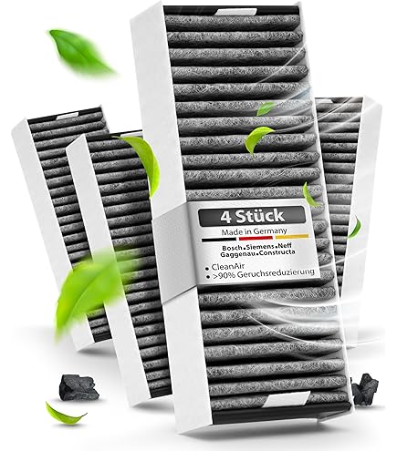 Aktivkohlefilter für Bosch CleanAir 17004796 HEZ9VRUD0 HZ9VRCR0... Le filtre à charbon actif de haute qualité neutralise et élimine les odeurs de cuisson désagréables. Longue durée de vie d'environ 150 heures ou jusqu'à un an pour une fraîcheur longue durée. Filtre Compatible Bosch Siemens FilterBase® Filtre à Charbon Actif Clean Air 4 Pièces - Enseble De Neutralisation Odeurs Cuisson 150h Compatible avec Bosch HEZ9VRUD0 (17004811), Siemens HZ9VRCR0 (17004796), Neff Z821VR0 (17004806), Gaggenau CA282111 (17004818). Le filtre à charbon actif de haute qualité neutralise et élimine les odeurs de cuisson désagréables. Longue durée de vie d'environ 150 heures ou jusqu'à un an pour une fraîcheur longue durée Choisissez Qwork, où votre argent travaille plus dur pour vous. Lot de 4 filtres à charbon actif compatibles avec Bosch Clean Air