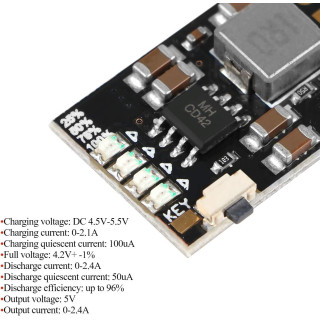 Module De Chargement 5v 2a Courbes De Charge Et De Décharge De La Batterie Convertisseur Cc Cc Boost 5v Doté d'un circuit de gestion d'alimentation intégré, ce module booste efficacement une batterie lithium jusqu'à 5 V, répondant ainsi aux besoins de charge et de décharge simultanés Dometic Group PerfectPower DCC 1212-10 Convertisseur CC/CC 12 V/DC - 12 Prend en charge la charge DC 5 V avec une entrée 0–1 A, une tension de charge complète de 4,2 V ± 2 %, un courant de décharge de 0–2 A, un courant de repos de 450 μA, une efficacité de conversion de 78–90 %, les dimensions de la carte sont de 23 mm x 15,4 mm x 5,7 mm. Charge et décharge de la batterie lithium-ion - 12 méthodes de charge... Fabriqué avec une base PCB, des composants électroniques et des connecteurs métalliques. (Boost in)Courant de décharge:0-2 A ; Courant de repos de décharge (Boost in) :450 uA (Boost in) Efficacité de conversion de décharge:78 % à 90 % (Boost out) Courant de sortie :0-1,2 A (5 V) Température ambiante de fonctionnement:-40° à +85° Température de stockage:-65° à +125° Dimensions de la carte:23 x 15,4 x 5,7 mm Package 2x Module de charge/décharge 5 V, convertisseur CC-CC, module boost Compatible avec les équipements alimentés par batterie, les batteries au lithium 18650 14500, les téléphones portables DIY, les équipements d'alimentation UPS DIY, la charge solaire, les lecteurs mp3/mp4, les équipements audio, les équipements vidéo, les appareils portables, les applications Bluetooth. Item Specifications Tension de charge:5 V CC Courant de charge:0-1 A Tension de charge complète:4,2 V +-2 %.