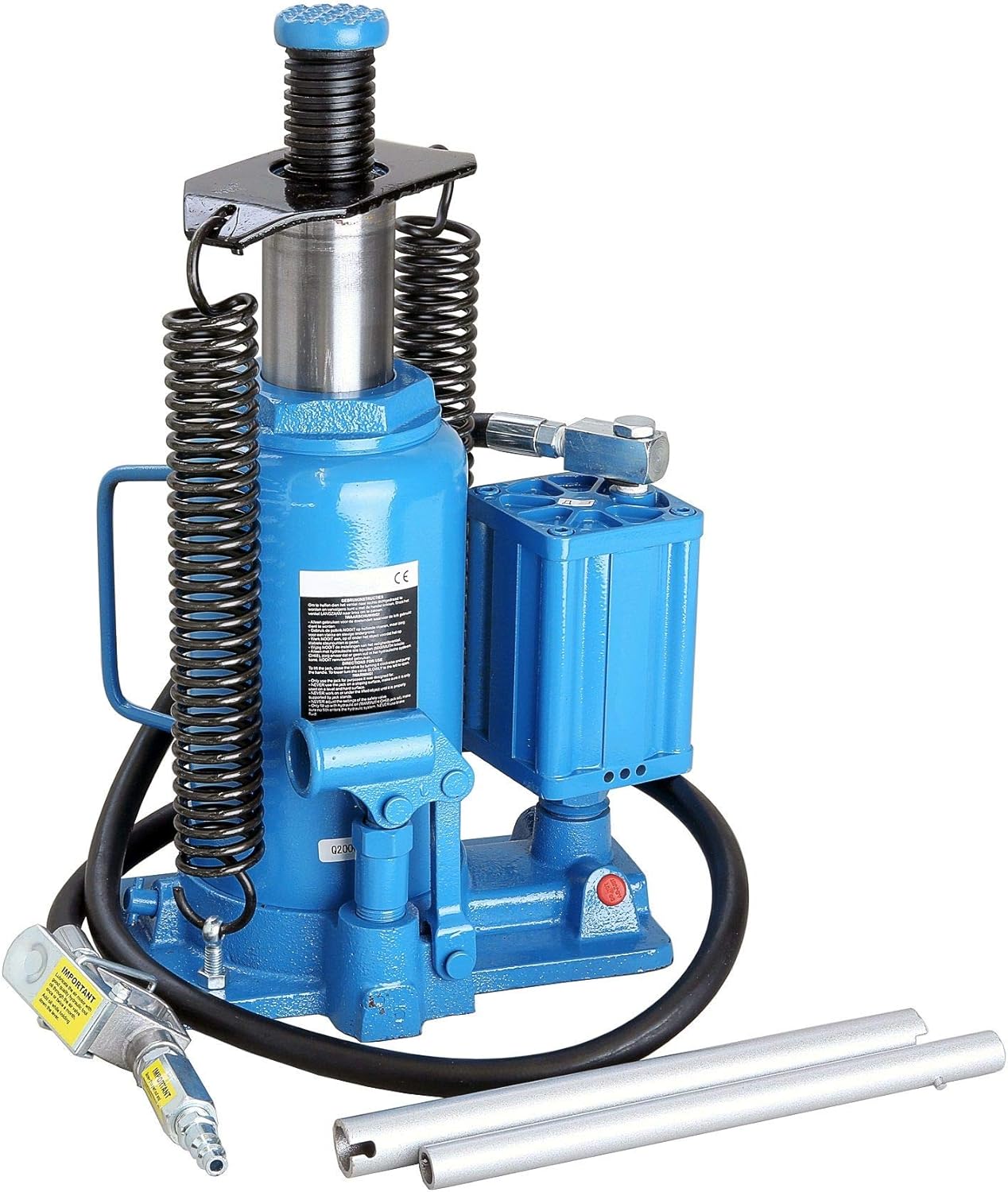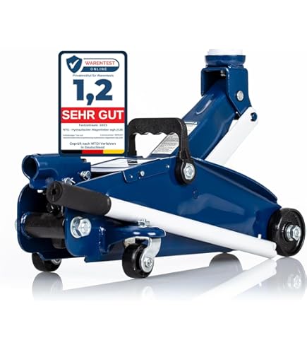 Cric Electrique Cric Hydraulique Pour Charges Lourdes 5 à 25 Tonnes - Carl Stahl Leve Voiture Cric de levage pneumatique mobile Véhicule Camion Aide à la manœuvre air comprimé 22 tonnes Cric hydropneumatique Kraft Muller, capacité 60T pour levage de camions, tracteurs, bus, Roues polyuréthane résistantes... La construction en acier robuste promet un haut niveau de durabilité et de robustesse. Le cric hydraulique dispose de roues extra larges en polyuréthane (PU) qui permettent au cric de franchir facilement les obstacles au sol tels que des tuyaux ou autres. Kraftwelle Cric hydraulique compact pliable 60 tonnes/30 tonnes KW-60T Cric hydraulique 60 tonnes/30 tonnes - Cric hydraulique compact pliable - Arbre de puissance - Cric hydraulique à air compact 60 t/30 t - Cric hydraulique à air robuste pour 60 ou 30 tonnes avec différentes hauteurs de levage et une construction relativement légère et compacte. Hauteur de levage à 60 tonnes : environ 288 mm Hauteur de levage à 30 tonnes : environ 395 mm , Hauteur minimale : 205 mm Deux extensions installables incluses Robuster und faltbarer lufthydraulischer Wagenheber für 60 bzw. 30 Tonnen mit verschiedenen Hubhöhen und einer verhältnismäßigen leichten, kompakten Bauweise