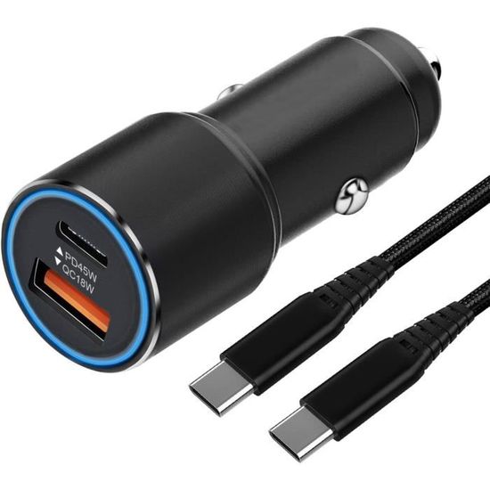 Accessoires Voiture Chargeur De Voiture USB Type C Accessoire Voiture Autolader USB A & USB C - Snellader - 68W - 3.1A - Auto oplader USB - 2 UGREEN 130W Chargeur Voiture USB C PD QC 3.0 avec Câble USB Type C... Doté d'une technologie de charge rapide délivrant jusqu'à 3., 1A, ce chargeur compact et élégant est compatible avec une multitude d'appareils : smartphones, tablettes, GPS et enregistreurs de conduite. Son design sophistiqué en noir mat avec finition texturée et anneau lumineux bleu ajoute une touche d'élégance à votre véhicule. La conception robuste assure une connexion stable et une distribution optimale de la puissance. Découvrez ce chargeur de voiture OLAF ultra-puissant de 68W avec double port USB-C et USB-A. COMPATIBILITÉ: Compatible avec de nombreux appareils comme iPad, GPS, téléphones, et enregistreurs de conduite pour une utilisation polyvalente DESIGN COMPACT: Construction élégante en noir avec finition texturée et anneau lumineux LED bleu pour une utilisation facile la nuit PROTECTION INTÉGRÉE: Système de protection contre la surtension, la surchauffe et les courts-circuits pour une charge sécurisée Deux interfaces USB, courant élevé 3,1 a, chargement simultané de la tablette du téléphone portable. Convient pour 12V-24V: voiture, SUV, tout-terrain, camion...