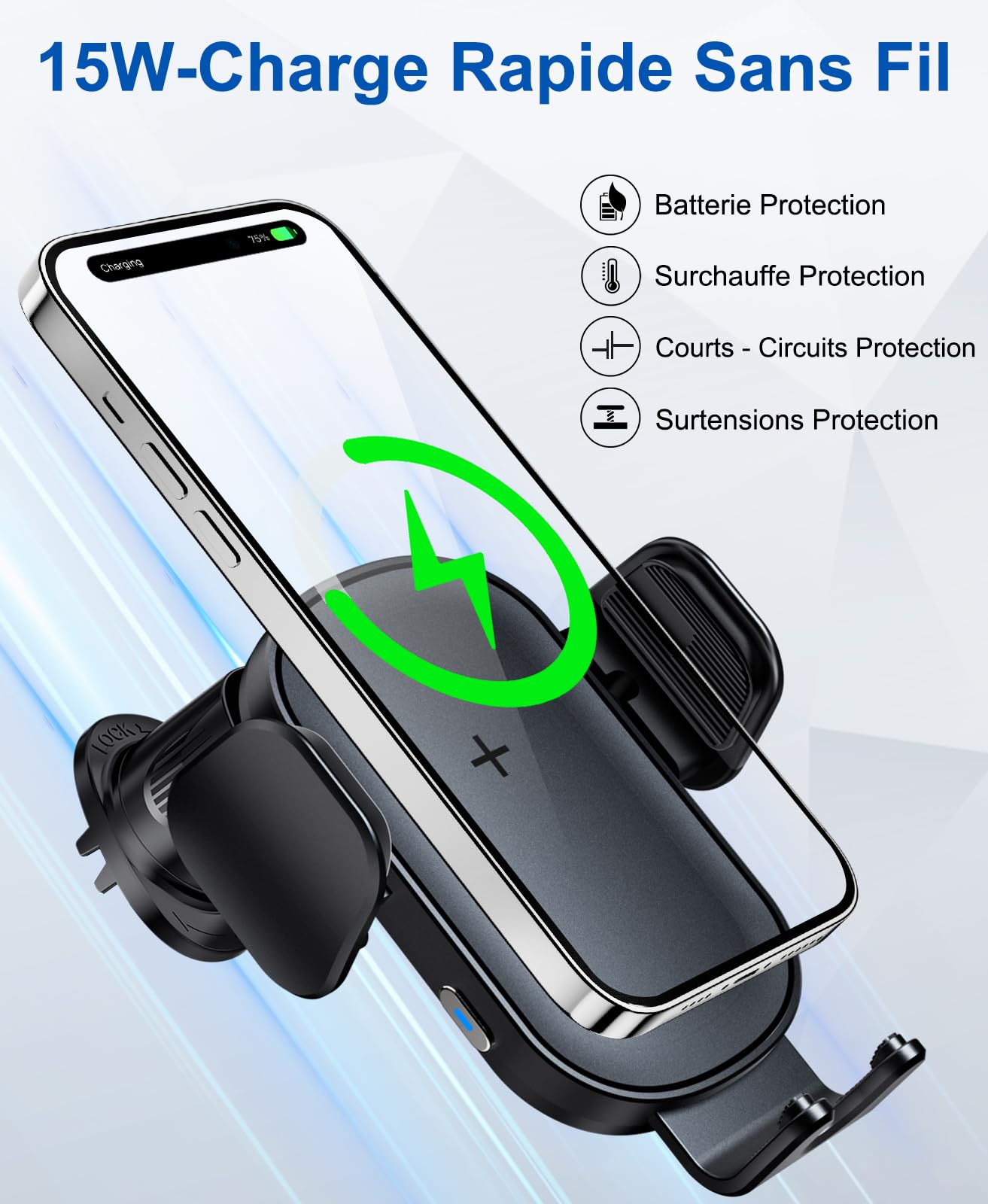 C'est l'idéal pour vous Il fonctionne silencieusement et ne perturbe pas votre conduite tout au long de la journée. Chargeur IPhone Samsung Huawei Voiture PRUKEU 15W Qi Chargeur Sans Fil Chargeur Induction Voiture Même sur des routes accidentées, ce support ne tremble pas et ne tombe pas. La fonction de serrage et de libération adopte un mécanisme d'amortissement confortable, ce qui rend son utilisation plus confortable et plus pratique pour vous. Équipé d'un puissant clip de ventilation. Ce support a subi un certain nombre de tests stricts de niveau militaire pour s'assurer que le produit est solide et durable. PRUKEU Chargeur sans Fil Magnétique pour Voiture Vent Mount Compatible Mag-Safe 15W Qi Magnet Car Phone Holder for iPhone 12/13/14/15/16 Pro/Max/Plus/Min Indicateur de charge Le voyant bleu indique l'état de charge, le voyant rouge indique l'état de veille. Grâce au principe de fonctionnement mécanique, vous pouvez retirer votre téléphone à tout moment, même si la voiture est éteinte. Il s'adapte parfaitement à tous les téléphones de 4 à 7 pouces avec la charge sans fil QI. Avant l'utilisation, connectez le chargeur de voiture QC3., 0/18W pour une charge rapide et efficace. Ce produit a obtenu la certification internationale CE/FCC/QI/RoHS/UL etc., Chargeur rapide 7., 5W compatible avec les séries iPhone X/11/12/13/14/15/16; Chargeur rapide 10W compatible avec les séries Samsung Galaxy S24/S23/S22/S21/S20/S10/S9/S8/S7/S6, Note 20/10/9/8, Huawei Mate/P 60/50/40/30/20/P40/30/20, Xiaomi 14/13/12/11/10/ 9 ETC ; Chargeur rapide 15W compatible avec LG V70/V60/V50/V40/V30 ETC. Chargement Qi sans fil et chargement magnétique : prend en charge la fonction de chargement sans fil des téléphones mobiles pour être directement connecté au chargeur de voiture sans fil pour le chargement. Simple et pratique Chargeur Induction Voiture 15W Qi Chargeur sans Fil Voiture Support Auto for ... · 49,99 € de livraison · Inclut les droits et taxes d'importation · Livraison... Dissipation efficace de la chaleur Il est doté de trous de dissipation thermique à l'arrière pour améliorer efficacement l'efficacité de la dissipation de la chaleur et maintenir le chargeur au frais à tout moment. (Fonction intégrée de détection de corps étrangers FOD) En même temps, vous pouvez retirer votre téléphone à tout moment, même après avoir éteint la voiture. Description du produit Support de voiture pour chargeur sans fil de qualité supérieure Ce support de voiture chargeur sans fil silencieux, léger et solide fournit la meilleure assistance pour votre navigation en voiture.
