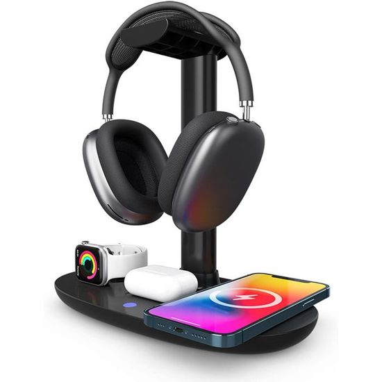 Support de Casque Support de Chargeur sans Fil 4 en 1 Support de Charge Rapide sans Fil Standard QI Dock de Station de Charge avec Support de Casque Aussi un cadeau cool et pratique pour les joueurs, fils, garçon, homme, mari et petit ami ^ Ce chargeur sans fil multi-protection est équipé de trous de dissipation de chaleur sur le fond Design élégant Abs Pc Chargeur Sans Fil 4 En 1 Avec Support De Casque Station De Charge Support Chargeur Téléphone Casque [élégant élégant]: Avec conception simple mais élégante, ce chargeur sans fil ajoute une touche d'élégance à n'importe quelle pièce tout en étant conviviale. Spec: Type d'élément: 4 en 1 support de chargeur sans fil Matériel: ABS, PC Tension d'entrée / Current: DC 9V-2A, 12V-2A Téléphone mobile Sortie de charge sans fil: 7., 5w / 10w / 15 () Chargeur sans Fil, Station de Charge agnétique sans Fil, Station de... [Multi-functional Wireless ] : Our 4 in 1 wireless stand supports charging of mobile phones, earphones, watches, and even headphones with a detachable Hanger. [Sleek & Stelish]: Avec son design simple mais élégant, ce chargeur sans fil ajoute une touche d'élégance à n'importe quelle pièce tout en étant conviviale. [Utilisation polyvalente]: Idéal pour divers paramètres tels que les voyages, la maison, les hôtels, les maisons d'hôtes et les restaurants, offrant une solution de charge pratique à les utilisateurs. [Charge simultanée]: Cette station de quai peut facturer jusqu'à 4 appareils en même temps, aidant à garder votre bureau organisé et sans encombrement.