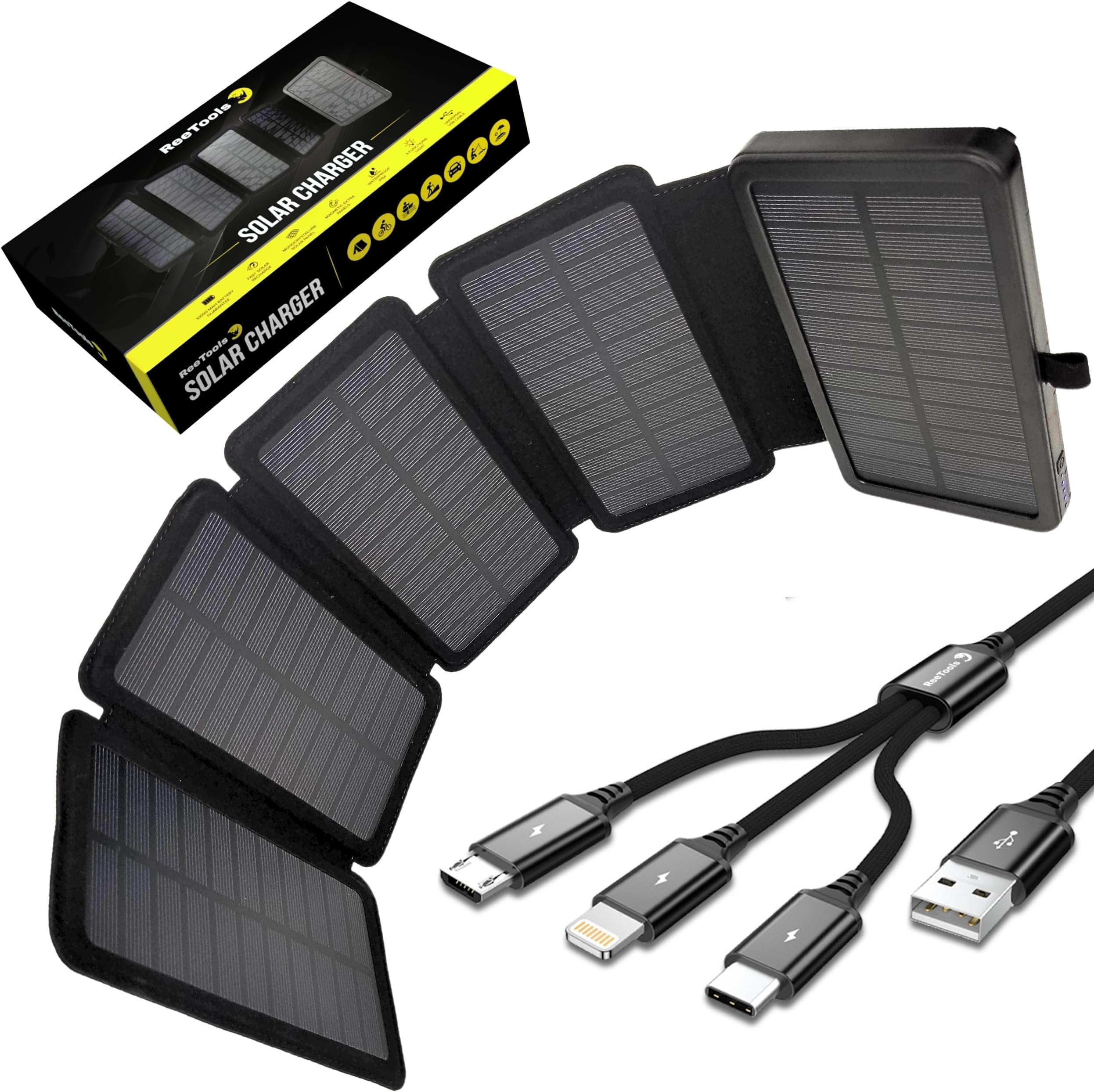 Chargeur Solaire Hiluckey Power Bank 27000mAh, USB C Chargeur Rapide Batterie Solaire Batterie Externe Solaire 20000mAh,Chargeur Solaire USB Waterproof Power Bank Solaire pour Batterie Externe 27000mAh, Recharge Rapide 3A, USB C à 15,33€ chez... Inclut un trou de sangle pratique pour le fixer à un sac à dos. Capacité massive de 27000mAh : Peut recharger un iPhone 13 jusqu’à 7 fois, un Galaxy S22 jusqu’à 5 fois, une tablette jusqu’à 3 fois. Port USB-C amélioré (entrée/sortie) : Le port USB-C prend en charge la charge et la décharge. Complètement rechargée en 5 heures avec un adaptateur PD 20W (non inclus). Associé à deux ports USB-A supplémentaires, il permet de charger jusqu’à 3 appareils simultanément. Parfait pour les activités extérieures : Avec une lampe torche intégrée à 3 modes (fixe, SOS, stroboscopique), cette batterie est idéale pour le camping, les randonnées ou les situations d’urgence. Un allié fiable en plein air. Capacité massive de 27000mAh : Peut recharger un iPhone 13 jusqu’à 7 fois, un Galaxy S22 jusqu’à 5 fois, une tablette jusqu’à 3 fois. Idéal pour une autonomie prolongée en voyage ou en plein air