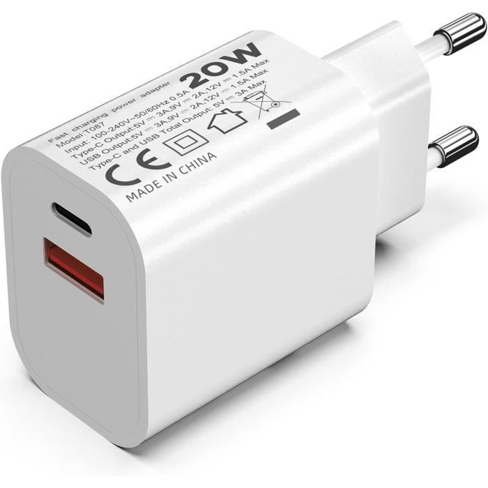 Pd25W USB QC3.0 Charge rapide UK Us EU Prise Chargeur USB de voyage portable Chargeur mural Type-C Chargeurs de téléphone pour iPhone Samsung Xiaomi - Chine Chargeur téléphonique et chargeur PD prix Sa puissance maximale est de 20W, ce qui est 3 fois plus rapide que 5V1A. La technologie Power Delivery peut charger l'iPhone 14 de 0% à 50% en 30 minutes Bloc Double Port Usb A+c 2 Pièces] Chargeur USB-C 30W, 2 Ports [USBC + USBA] Avec Câble USB-C 2M-pour I-Phone 11/12/13/SE/14/15/16 Pro Max, Chargeur Rapide PD3.0 USB A+C, Adaptateur Double Port Bloc Alimentation Compact Voyage Charge rapide et design à double port : ce chargeur dispose d'un double port USB C (Max 20W) + USB A (Max 18W)), ce qui vous permet de charger rapidement deux appareils en même temps, jusqu'à 3 fois plus rapide qu'avec un chargeur de 5W. Compatibilité universelle : ce bloc d'alimentation pour téléphone portable à double port de 20 W est compatible avec presque tous les téléphones portables et tablettes, compatible avec 11/12/13/14/15/16 Pro Max/X/XS/XR/8 Plus/iPad Air/iPad Pro/iPad Mini/Samsung Galaxy S20/S21/S22/S23/S24/Note 20/10/Google Pixel/Huawei et plus encore. 20 W, USB-C, Charge rapide, Noir. 1 offre. 40,25 €. BHHB Chargeur USB C 30W 3 Ports Prise,Bloc d'alimentation Adaptateur Charge Rapide Chargeur Multiple Rapide... Minimisez le temps d'attente et profitez d'une vie facile. Vous pouvez charger deux appareils en même temps. Si vous avez des questions sur nos produits, veuillez nous contacter, nous vous répondrons dans les 24 heures. Vous pouvez partager ce chargeur avec votre famille et charger facilement vos appareils avec un seul chargeur A+C.
