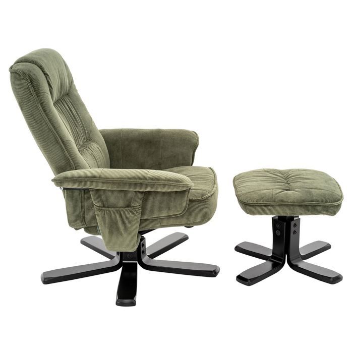 Fauteuil pivotant à 360°; Avec des poches de rangement latérales; Hauteur d'assise : 43 cm; Profondeur de l'assise : 47 cm; Poids maximal supporté : 100 kg... Le fauteuil pivotant et le tabouret sont recouverts de tissu côtelé beige doux. - Désignation du matériau de l'assise : 100 % polyester. Dimensions assemblées : le fauteuil relax mesure 76 x 87 à 96 x 61 à 92 cm, le tabouret assorti mesure 47 x 37 x 41 cm. - Charge maximale : Charge maximale : 100 kg. Avec son rembourrage confortable et son dossier réglable, le fauteuil de salon Charly offre l'endroit idéal pour se détendre. Les deux offrent un confort optimal et s'adaptent parfaitement à n'importe quel salon Talgarth Fauteuil relax avec tabouret, crème, noir - Largeur de l'accoudoir : 13 cm - Largeur du dossier : 56 cm - Hauteur du dossier : 64 cm - Largeur d'assise : 52 cm. Description du matériau : Housse en velours côtelé doux, beige. Fauteuil Design Moderne 76x87x61cm Idimex Fauteuil De Relaxation Charly Avec Repose-pieds Pouf, Siège Pivotant Et Dossier Inclinable En Velours Côtelé Beigenoir Fauteuil Pivotant Avec Tabouret Une poche latérale pratique offre de la place pour les petits objets, tandis que le cadre en bois laminé laqué noir allie stabilité et style. Caractéristiques : Dossier réglable., - Pivotant., Repose-pieds inclus. Que ce soit pour lire, regarder la télévision ou tout simplement se détendre, le fauteuil de repos assure un confort optimal. WOLTU SKS22dgr Fauteuil de détente Fauteuil Relaxant en Velours et Boi... - Hauteur d'assise : 43 cm. Montage facile à l'aide des instructions de montage fournies (français non garanti). Design pivotant : grâce à son cadre pivotant en bois stratifié peint, ce fauteuil offre une flexibilité et un confort supplémentaires à votre maison - Profondeur d'assise : 47 cm Avertissement De Sûreté Veuillez vous référer à la notice pour connaître les précautions de sécurité, y compris la capacité maximale de poids de 100 kg, les instructions d'assemblage et les conseils d'utilisation pour les fonctions pivotantes. Livraison et montage : - Contenu de la livraison : fauteuil et tabouret L'article est livré démonté. Dossier réglable : ajustez le dossier individuellement pour trouver la position parfaite pour lire, se détendre ou regarder la télévision