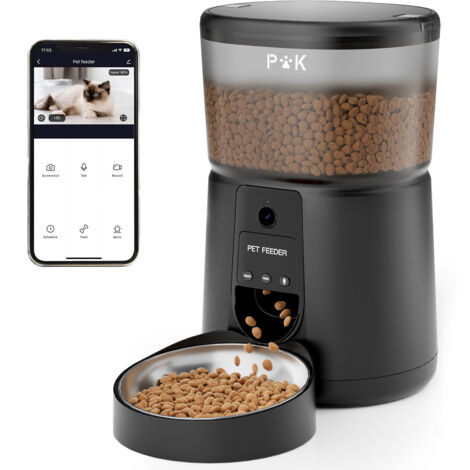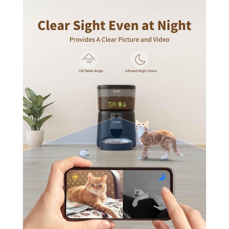 Convient aux petits chiens et chats. Bol en acier inoxydable Couvercle de verrouillage de sécuritéCouvercle verrouillable de sécurité pour empêcher vos amis coquins de l'ouvrir. Sac déshydratant intégré pour garder la nourriture de votre chien au frais. Gamelle Automatique Chat HHOLove Distributeur Croquettes Chat Automatique Avec APP, Wi-FI 5G/2 Distributeur Avec Vision Nocturne 1080P Rend chaque bouchée délicieuse ! Visualisez clairement votre animal et les conditions environnantes sur votre smartphone à tout moment. Conception améliorée sans obstruction et brouillage an-ti – Ce distributeur de nourriture pour chien est doté d'un rotor anti-colmatage breveté à l'intérieur, garantissant que la nourriture est livrée à temps et jamais en retard pour chaque repas. La sortie du chargeur est dotée d'un détecteur infrarouge intégré, qui arrêtera la distribution de nourriture lorsque la sortie est bloquée pour éviter le bourrage des aliments. Choisir le distributeur automatique connecté idéal La gamelle en acier inoxydable est facile à nettoyer et évitera à votre chat de développer un menton noir. Il peut être configuré jusqu'à 20 repas par jour et jusqu'à 39 portions par repas, développant une alimentation saine pour votre animal de compagnie bien-aimé. Le réservoir de nourriture est également facilement détachable pour un nettoyage régulier afin de garder les aliments propres. Capacité de stockage des aliments de 4 L – La capacité de 4 L/14 tasses (environ 1,5 kg/3,3 lb de stockage des aliments) répond aux exigences d'alimentation jusqu'à une semaine. Vous pouvez donner à votre animal de compagnie des collations supplémentaires à tout moment, n'importe où, et configurer de manière flexible l'alimentation de l'horaire pour empêcher votre animal de trop manger PETLIBRO 5G et 2.4G Wi-FI Distributeur Croquettes Chat Autoatique pour... Télécommande APP et partage familial - Ce distributeur automatique d'aliments pour animaux de compagnie DOGNESS F10A prend en charge le WiFi 2,4 GHz et 5 GHz, vous permettant de personnaliser votre plan d'alimentation à tout moment et en tout lieu via l'application DOGNESS pour vos amis à quatre pattes. Interaction audio bidirectionnelle – Mangeoire intelligente DOGNESS conçue avec un haut-parleur et un microphone intégrés. Cette mangeoire pour chat continuera à fonctionner dans des situations de panne de courant soudaine, garantissant que votre chat n'aura pas faim. Vous pouvez enregistrer 3 messages vocaux personnalisés de 10 secondes sous forme de notifications vocales à l'heure des repas. Ne manquez jamais un repas le week-end et même lors de courts voyages d'affaires, et ayez l'esprit tranquille. Prend en charge l'enregistrement vidéo et la prise de photos.