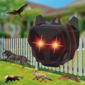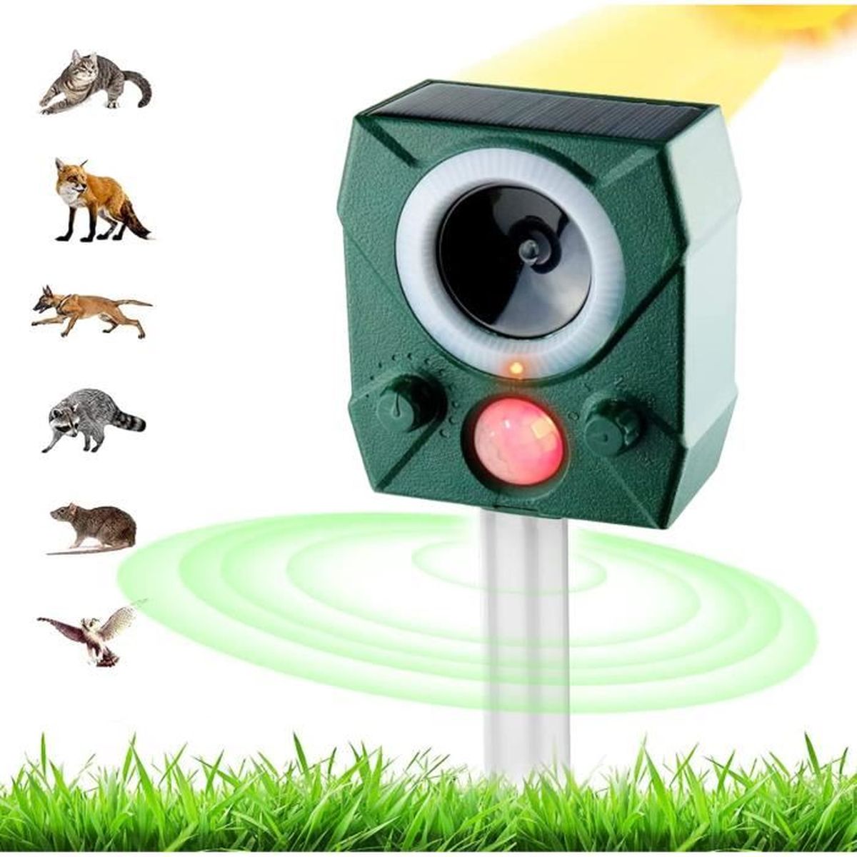 Repousse Animaux Extérieur Jardin Anti Renard Répulsif à Ultrasons Pour Chat - Avec Détecteur De Mouvement Et Flash LED - Fonctionnement Ultrason Oiseau Repulsif Pigeon Ultrason Répulsif Chat, Repulsif Chat Exterieur avec EFFICACE & HUMAIN]Ce repulsif chat exterieur utilise une technologie ultrasonique avancée. Dès que les animaux pénètrent dans la zone protégée... 【COUVERTURE ÉTENDUE】Ce repulsif chat ultrason, équipé d'un détecteur de mouvement PIR, détecte l'activité animale dans un angle de 120° et une portée de 12 mètres (40 pieds). Protégez votre jardin, vos plantes et vos fleurs des nuisances animales et profitez d'un environnement paisible et agréable Chargez-le en plein soleil pendant environ 3 heures avant utilisation pour protéger vos jardins, cours et fermes des chats et chiens errants, des renards, des cerfs, des écureuils, des ratons laveurs et des mouffettes Ayez l'esprit tranquille grâce à un répulsif sans cruauté Il fonctionne par tous les temps, protégeant votre jardin quelles que soient les conditions météorologiques Placez simplement le anti chat exterieur dans les zones fréquentées par les animaux, à 9-10 inches (22,8-25,4 cm) du sol. Activez-le d'une simple pression sur un interrupteur. Repulsif Chat Exterieur, Répulsif Chat Ultrason 5 odes Réglable...