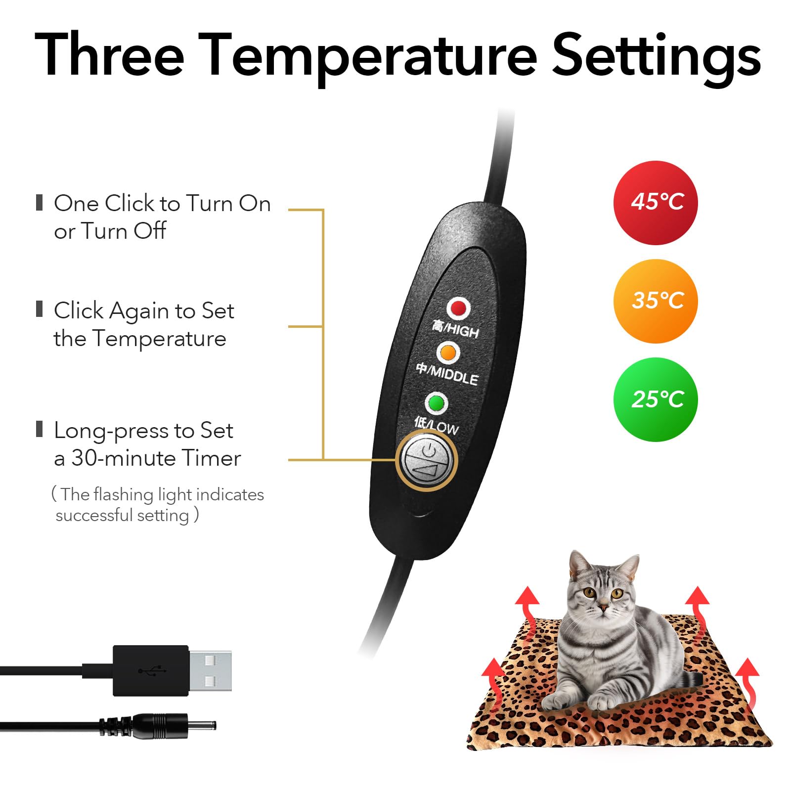 Ou placez une couche de sable / écorce dans le réservoir pour éviter le contact direct et la dissipation de la chaleur. Coussin Chauffant, Lit Pour Animal Domestique, Coussin Chauffant... * Dimensions : 22 x 15,5 cm, 33 x 18 cm., Couleur : noir., *Alimentation : 5 V 2 A., * Puissance : 7,5 W/8,5 W. *Facile à utiliser : ce tapis peut être utilisé sous le réservoir d'eau ou la boîte d'élevage. Tapis Chauffant Lavable Animaux Coussin Chauffant Pour Chat, Couverture Chauffante Chat électrique Imperméable, Tapis Chauffant Pour Chien Et Chat, Coussins Chauffants Anti-Morsure Pour Chiot Avec Minuterie Numérique Chauffage Reptile * Matériau : cuir synthétique. Caractéristiques : * Matériau durable : fabriqué à partir de cuir souple, ce coussin chauffant offre un extérieur flexible qui peut facilement se plier, assurant le confort de vos animaux de compagnie tout en étant facile à nettoyer. *Utilisation polyvalente : convient à la plupart des petits reptiles, ce coussin chauffant comprend un interrupteur de contrôle de la température qui fournit une chaleur constante, assurant que vos animaux de compagnie restent à l'aise 24 heures sur 24., Caractéristiques : * Nom du produit : coussin chauffant USB à température réglable. Alimenté par USB et chauffage réglable : ce coussin chauffant pour animaux de compagnie fonctionne avec une connexion USB 5 V pour une alimentation facile et polyvalente, et dispose d'un contrôle de la température réglable qui vous permet de régler la chaleur de 25 °C à 50 °C, parfait pour les chats d'intérieur, les chatons, les chiots et les reptiles. [Confort en cuir synthétique doux] Fabriqué à partir de cuir synthétique noir souple et doux, le tapis est confortable pour un usage quotidien et peut être facilement nettoyé, donnant aux animaux un endroit de repos confortable tout en simplifiant les routines de soins pour animaux de compagnie pour les propriétaires. * Réglages de chaleur personnalisables : doté d'un contrôle de la température réglable avec des paramètres allant de 25 à 50 degrés, il vous permet de créer un environnement chaleureux qui répond aux besoins spécifiques de vos animaux de compagnie. Pour des raisons de sécurité, il est préférable de prévoir un espace pour la circulation de l'air. Offrez à votre compagnon à quatre pattes un confort optimal avec notre coussin chauffant réglable ! Idéal pour reptiles, chats, chiens et chiots, ce tapis thermique utilise une technologie avancée en polymères chauffants pour diffuser une chaleur douce et apaisante * Bien-être amélioré : conçu pour soutenir les reptiles dans leurs activités quotidiennes, ce coussin aide à améliorer l'appétit et le métabolisme en maintenant une température corporelle optimale sans perturber leur sommeil. Chaleur stable pour la santé des animaux de compagnie : aide à soutenir la santé et le métabolisme des petits animaux tels que les reptiles en maintenant une température corporelle appropriée, améliorant l'appétit et l'activité quotidienne sans interrompre le sommeil. PetWarm – Coussin Chauffant Électrique pour Animaux