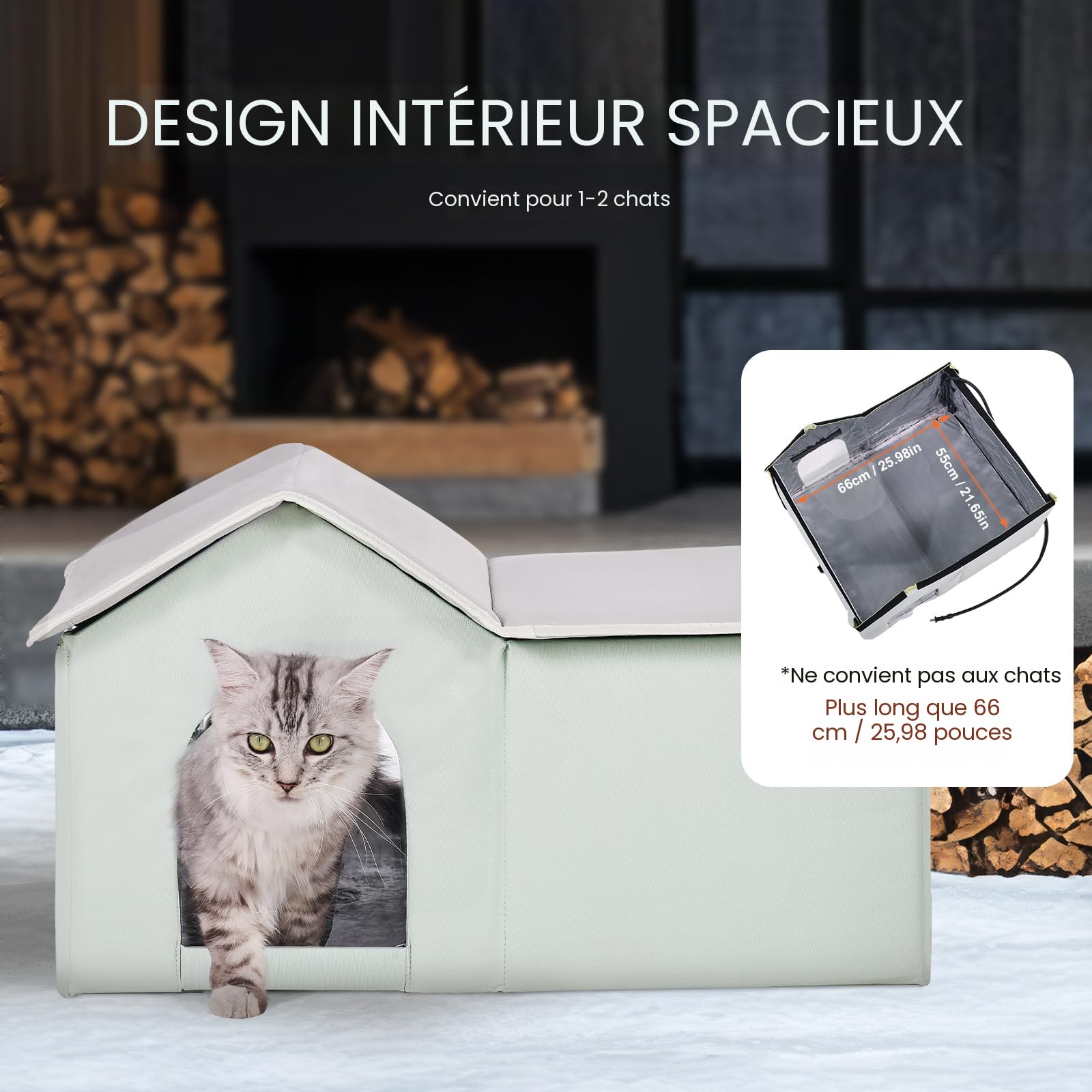 Le coussin et le cadre détachables facilitent l'entretien complet pour une utilisation prolongée et une hygiène optimale. Chauffage Niche Niche Chauffante Pour Chat D'intérieur – Lit Chauffant Pour Panier Chauffant Chat Description du produit Conçu pour le confort et la sécurité, cette maison chauffante pour chat dispose d'un réglage de température pour garder vos animaux au chaud en hiver. Niche d'élevage chauffée pour chat,VEVOR maison d'extérieur pour chat... Liste des produits:Lit pour animaux de compagnie chauffé * 1 morceau Mode d'emploi 0 Technologie de Chaleur Uniforme: Offre une distribution de chaleur homogène entre 35 et 50 degrés , réduisant la raideur articulaire grâce à un contrôle de température intelligent avancé, alimenté par un module de chauffage précis intégré et fiable conçu pour le bien-être félin et son confort quotidien LIT POUR CHAT pour chats d'intérieur, lit de couchage chaud semi-fermé... Poids: 600gTaille: 45x32x35cm / 17,72x12., 6x13,78 poucesCaractéristiques: température chauffée et réglable, enfigeant avec une banque d'alimentationCouleur: grisTempérature: 35-50 ° CRemplies: coton perléApparence: Arctic FleeceMatériau inférieur: granules sans glissementModèle: de chauffage standard / électriqueAlimentation: USB-DC-5V DirectContrôle de la température: 4 réglages + minuterie de 15 à 60 minutesNote:En raison de différents paramètres d'éclairage et d'écran, la couleur de l'élément peut être légèrement différente de l'image. Son toit arrondi semi-ouvert offre un nid douillet pour les petits et moyens gabarits, y compris les chiots et les chatons. Niche Sécurisée : Design semi-ouvert avec arche et fenêtre d'aération, réduisant efficacement le stress et offrant à votre chat un espace confidentiel pour se reposer en toute tranquillité. Clawsable Niche chauffante indestructible pour chats d'extérieur en La fonction amovible et lavable garantit une grande praticité, tandis que son utilisation toute l'année convient aux espaces intérieurs comme les chambres, les zones extérieures ou les besoins de voyage. Idéal pour les intérieurs comme les extérieurs, cette maison chauffante pour chat assure confort et bien-être grâce à son système de chauffage intégré et sa structure douillette.