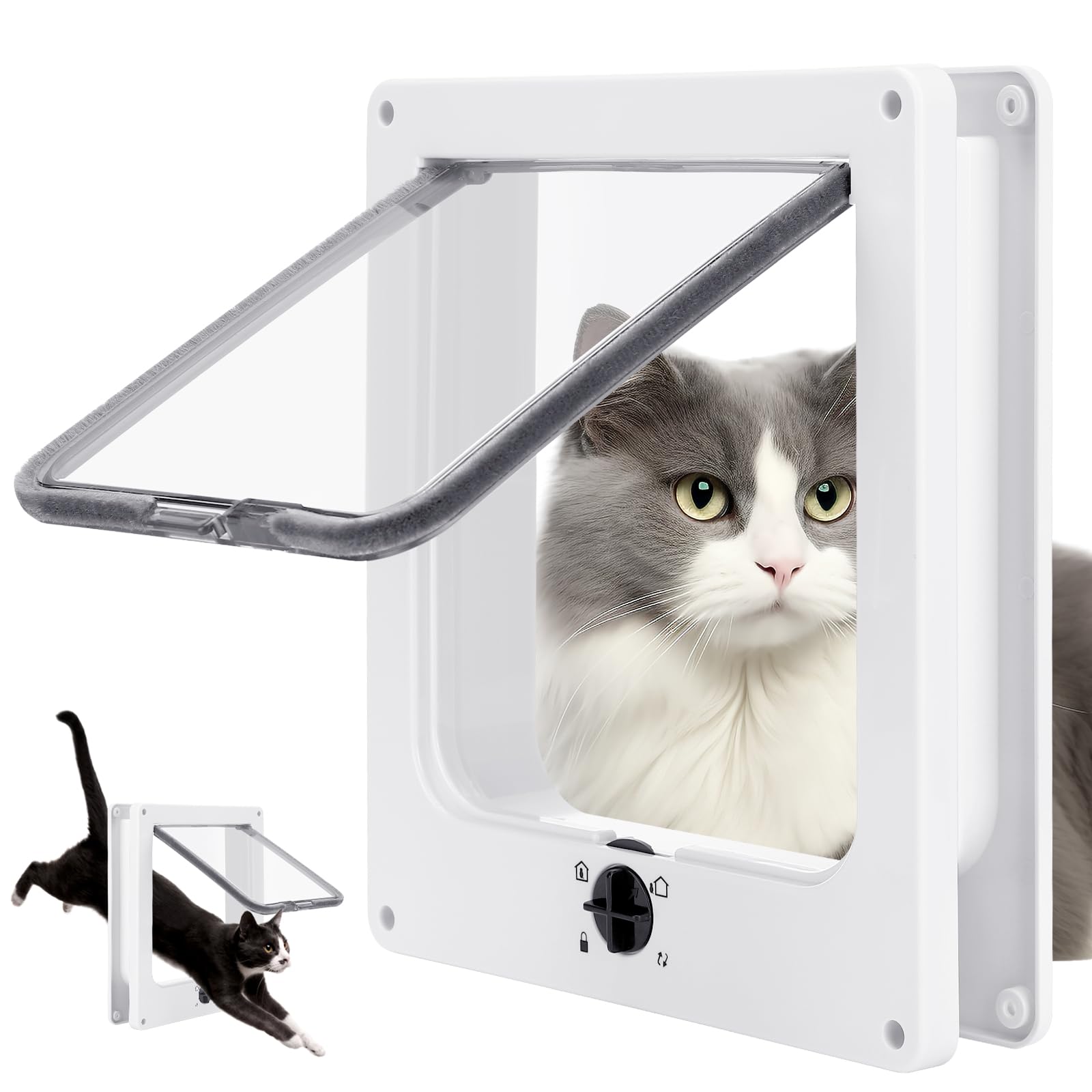 Chatière Isolante Chatière Pour Chat Intérieure | Système Verrouillage 4 Séparation Chat Chiot Amovible payanwin Chatière pour chat avec verrouillage à 4 positions pour Description du produit Chatière pour chat - 25 x 24 cm - Grande chatière avec serrure à 4 voies - Verrouillage de sécurité - Résistant aux intempéries - Clapet pour chat - Installation facile - Porte pour l'intérieur et l'extérieur - Fenêtre - Mur Chatière en plastique ABS de qualité supérieure avec surface lisse, sûre et durable. La chatière dispose de 4 modes d'ouverture et de... Spécification:Nom du produit: porte de chatMatériel produit: PPTaille du produit: environ 24x22 cm / 9,45x8,66 poucesPoids du produit: 244gListe des produits:1 * porte de chat1 * paquet de piècesNotes:En raison de différents paramètres d'éclairage et d'écran, la couleur du produit peut être légèrement différente de l'image. En raison de la différence de mesure manuelle, veuillez permettre une différence de taille de 1 à 3 cm. Assemblage Efficace: La chatière intérieure offre une installation facile avec les outils inclus, permettant aux utilisateurs de fixer rapidement la porte en place tout en économisant temps et efforts, une solution idéale pour les propriétaires occupés recherchant une option fiable Elle remplit également une double fonction en tant que barrière pour chiots ou portillon pour chatons, offrant ainsi une solution polyvalente et qui s'adapte aux besoins changeants des foyers. Gestion des Permissions Pratique : Cette chatière est équipée d'une poignée rotative 4 positions, permettant de verrouiller ou modifier facilement les accès pour contrôler précisément les déplacements de votre chat. Idéale pour restreindre ses mouvements en toute simplicité et adaptée à diverses situations domestiques. Matériau résistant: Cette chatière intérieure est fabriquée en excellent polypropylène, garantissant une solidité et une robustesse pour une utilisation à long terme tout en résistant à l'usure quotidienne, ce qui la rend idéale pour les maisons avec des animaux actifs ayant besoin d'un accès fiable à travers la porte. Polyvalence d'installation: Cette porte d'intérieur pour chat est conçue pour s'adapter aux portes en verre, portes en bois, portes en acier, cages pour...
