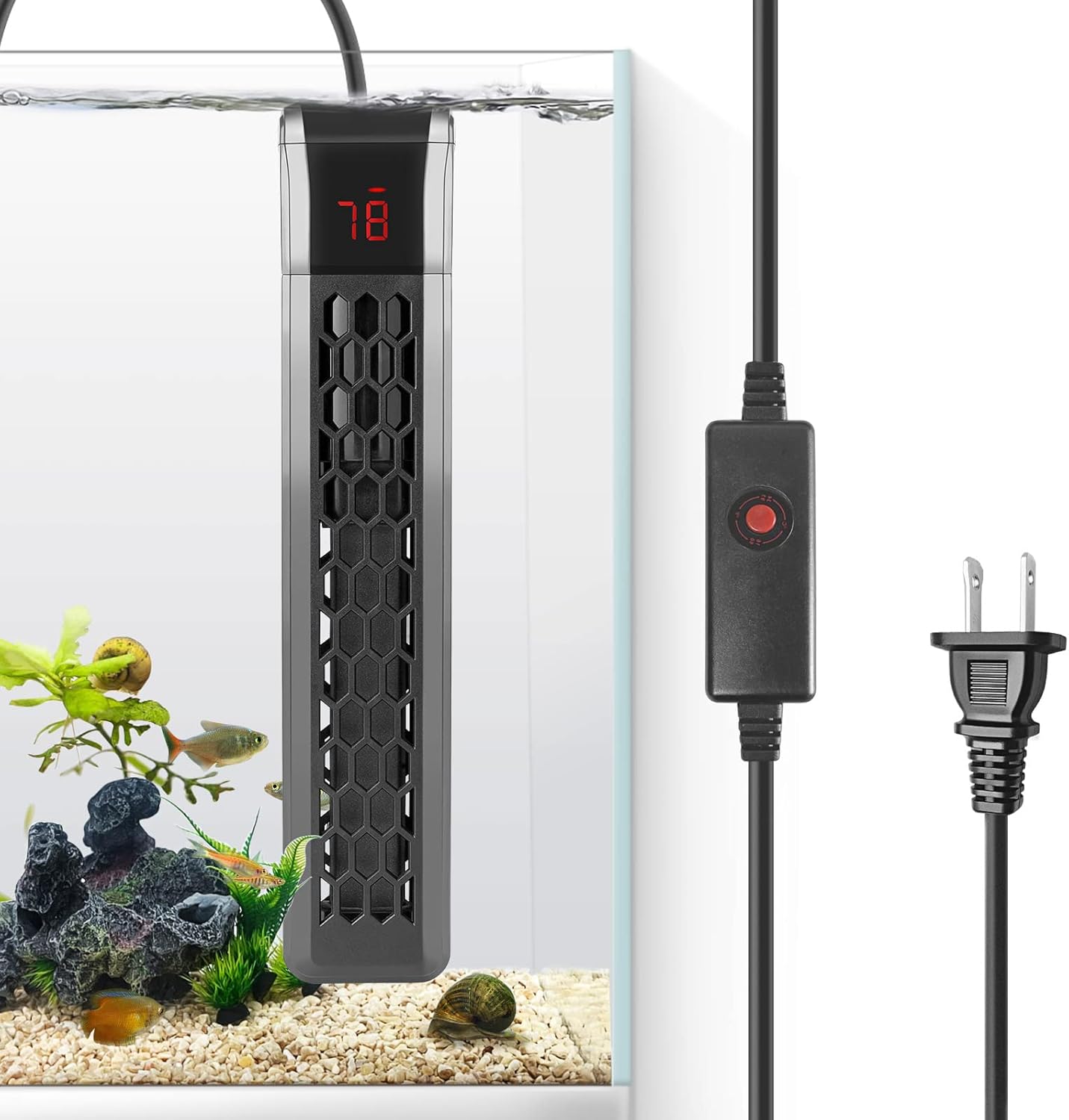 Appuyez longuement sur le bouton pendant 3 secondes pour basculer entre les unités degrés Celsius (° C) et Fahrenheit (° F). Petit chauffage pour aquarium Betta 3-4L 【Protection contre la surchauffe】 lorsque la température de l'eau dépasse environ 35 ° C, l'alimentation est automatiquement coupée et la cuisson du poisson est empêchée en toute sécurité. Chauffage Aquarium 20l Betta Boxtech Mini Chauffage D'Aquarium, 75W Submersible Betta Aquarium Chauffage Aquarium Tortue Crevettes Le réglage de la température est précis, la plage de réglage est de 20-34 ° c (68-93 ° F) et un réglage incrémentiel de 1 ° C peut être obtenu en appuyant brièvement sur le bouton. Idéal pour divers petits réservoirs de tortues et de poissons tels que les crevettes, les Bettas, les poissons - anges, les Guppys, les espadons et les aquariums Marie. HURRISE Pompe Submersible Aquarium 75W Débit Variable 3000L/H... S'il est utilisé dans un Aquarium, il doit être immergé verticalement; s'il est utilisé dans un aquarium de tortues, il doit être immergé horizontalement. Économisez de l'électricité et réduisez la consommation. Spécifications : Chauffage d'Aquarium 75 W, chauffage à température constante 20-34 °C (68-93 °F), longueur seulement 4,1 pouces, tension 220-240 V 50 Hz, adapté aux aquariums et aquariums de 20 à 60 L Fonction de température constante automatique: lorsque la température de l'eau atteint la valeur spécifiée, le chauffage arrête le processus de chauffage. Prend moins de place, se cache facilement, mais à pleine puissance! Vous êtes libre de cuisiner du poisson! Comment nettoyer? Veuillez débrancher et laisser refroidir l'appareil de chauffage pendant 10 à 20 minutes avant de le retirer pour nettoyer l'Aquarium ou changer l'eau. 【Remarque】 n'enterrez pas l'appareil de chauffage dans le sable ou le limon.