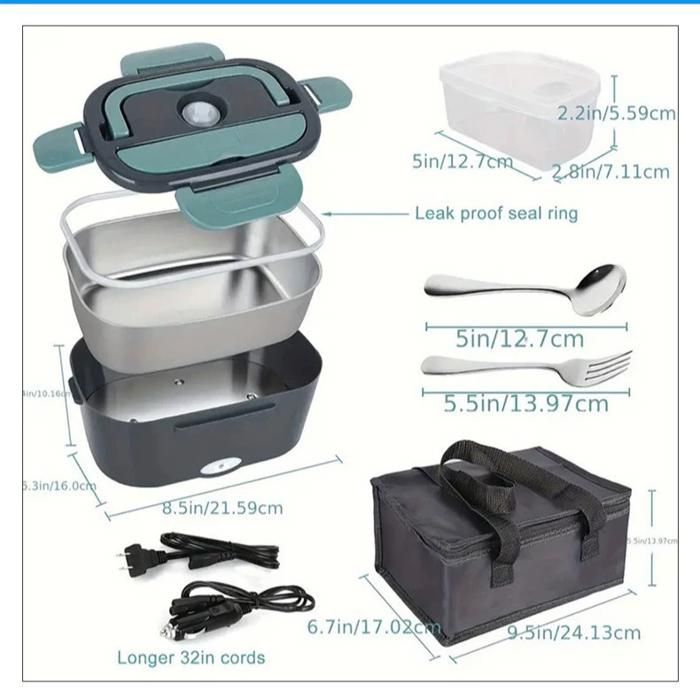 Lunch Box Chauffante 1.8 L Romon E-MANIS 75W Gamelle Chauffante Electrique,1.8 LChauffage Rapide 12V 24V Boîte Repas Isotherne Inox 304 ESMART Gamelle Chauffante, 3 en 1 Lunch Box Chauffante 12V 24V 220V, 1 TRAVELISIMO Lunch Box Gamelle Chauffante Électrique pour Voiture... Elle se distingue par sa poignée de transport pratique et est livrée avec un sac isotherme offert, plus une cuillère et une fourchette incluses — tous éléments conçus pour simplifier le transport. 【Chauffage Rapide 75W】La lunch box chauffante électrique bénéficie d’une puissance de 75W, garantissant un chauffage rapide et efficace. Plus besoin de chercher un micro-ondes : branchez simplement la boîte chauffante repas pendant 30 minutes, et dégustez des plats chauds et sains, où que vous soyez. 【Boîte à Lunch Électrique 3 EN 1】Cette boîte à lunch chauffante s’adapte parfaitement à l’usage dans les voitures (12V), les camions (24V) ainsi qu’à la maison ou au bureau (230V). Fabriquée en acier inoxydable 304 de qualité alimentaire, la boîte à lunch est sûre, hygiénique et durable, capable de répondre à vos diverses exigences alimentaires. Veillez à ce que la base chauffante ne entre jamais en contact avec l’eau. 【Conception Étanche】Cette lunchbox chauffante est équipée d’un couvercle scellé en silicone et de quatre boutons-pression latéraux, tous conçus pour éviter les fuites de liquide ou de nourriture pendant le transport. Petits prix et livraison gratuite dès 25 euros d'achat sur les produits Romon. Commandez Romon Gamelle Chauffante, Boite Chauffante Repas, 75W Lunch Box Chauffante Lunch Box Chauffante Electrique 1.8L Acier Inoxydable 12V/24V/220V Gamelle Isotherme Repas Chaud pour Voiture Camion Bureau