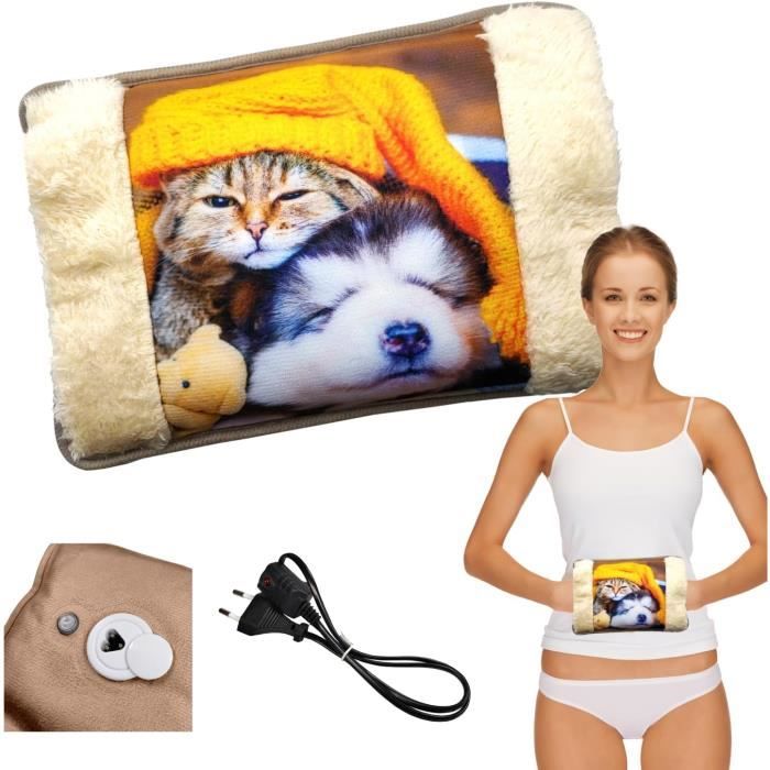 Chauffe Hiver Cadeau Noël Bouillotte Electrique Chauffante Rechargeable, Bouillottes Bouillotte Sécurité 65°C Pour Lit Sac À Eau Chaude Électrique En Peluche Forme De Chat Poche 2 En 1 Doux Bouillotte Eau Chaude Électrique, Boule Chauffante Avec Poches, Chauffe... Mode d'emploi Recharge pendant environ 10 minutes, mains chaudes pendant environ 1 heure et lit chauffé pendant environ 9 heures. Éviter les fuites pendant le chauffage. Nettoyer et ranger correctement pour assurer la longévité du produit. Description du produit Vous bouillotte eau chaude peluche chauffante Rechargeable pour Noël, nouvel an, Halloween, Thanksgiving, fête des mères. Liste d'emballage: vous recevrez un bouillotte electrique chauffante rechargeable gris (le sac vide ne contient pas d'eau) avec un ensemble d'outils d'injection: entonnoir, prise, fil, instructions d'injection. Matériel: le sac d'eau chaude électrique utilise 6 couches (3 couches par couche) de nouveau matériau PVC ignifuge avec une haute résistance à la pression et peut supporter une pression de 80 kg sans fissures. Séparation de l'eau: arrêt automatique à 65°c. Bouillotte À Eau Chaude, Bouteille Chauffante En Peluche - Bouillotte...