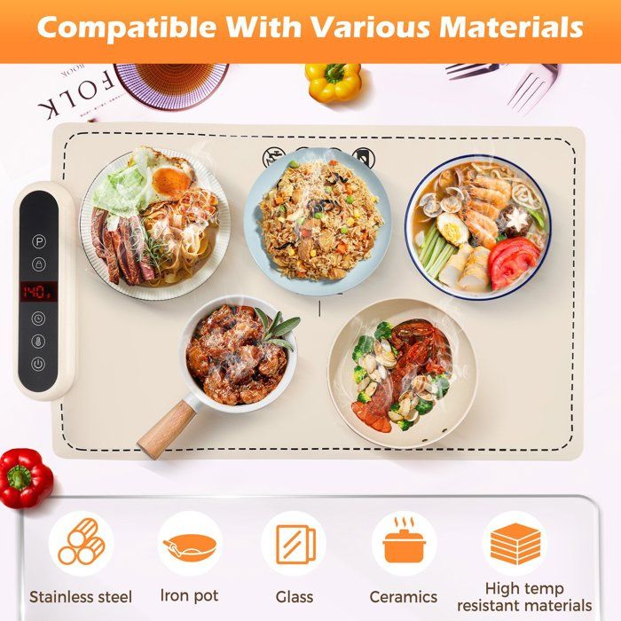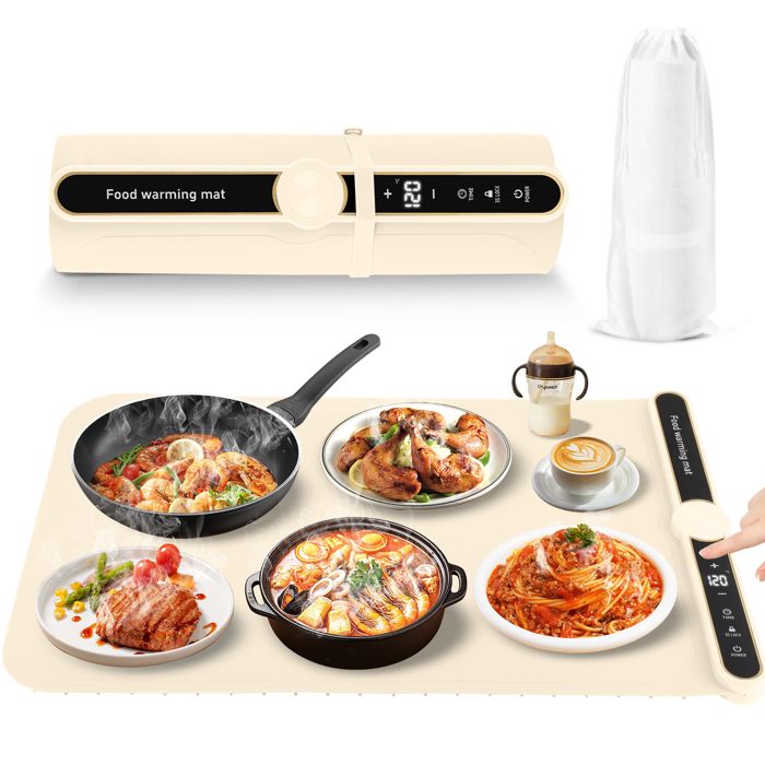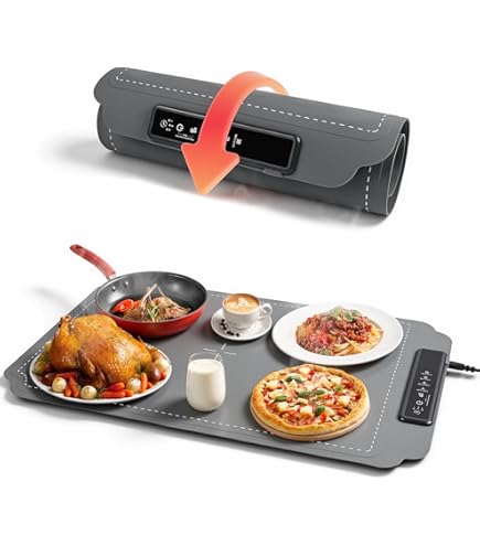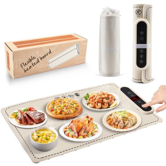 Chauffe Plat Avec Température Réglable à 6 Niveaux 50-100 ℃, 60 X 38 CM Plaque Chauffante Electrique Portable En Silicone Avec Minuteur 1 5 Heures 97415107 【⚡ 290W Haute Performance & Chauffage Express en 10 Secondes】-- Ce chauffe-plat électrique puissant chauffe vos aliments en seulement 10 secondes ! Chauffe Plat Réglable 6 Températures NEUF - Chauffe Plat Electrique, Plaque Chauffante Electrique Avec Bain Marie Electrique Verre, céramique ou métal - ce réchauffe-plat maintient vos aliments à température parfaite. Sa surface nano-silicone alimentaire, inspirée des meilleurs chafing dish, est anti-taches et facile d'entretien. [Enroulable & gain de place]Cette plaque chauffante flexible s'enroule et se range partout. Transportez facilement votre chauffe-plat électrique pour des repas en extérieur ou des buffets Plaque Chauffante Electrique avec 6Niveaux Temp,Plaque Chauffante Pliable Flexible,61 * 40cm Chauffe Plat pour Buffets Fêtes. -25€ dès 249€ d'achat, code 25DES... Votre réchauffe-plat garantit toujours la température de service idéale ! Avec 290W de puissance et une grande surface de 60x38cm, idéal pour les repas familiaux ou les dîners entre amis. Répartition uniforme de la chaleur sans points chauds - respectueux de tous les aliments ! 1 Chauffage rapide 2 Nettoyage facile 3 Rangement pratique 4 Sécurité garantie 【🌡️ 6 Niveaux de Température Réglable & Minuterie 4h】-- La plaque chauffante électrique intelligente offre 6 niveaux de température précis (50-100°C) et une minuterie de 4 heures. 1 Polyvalent 2 Dimensions généreuse 3 Adapté applications