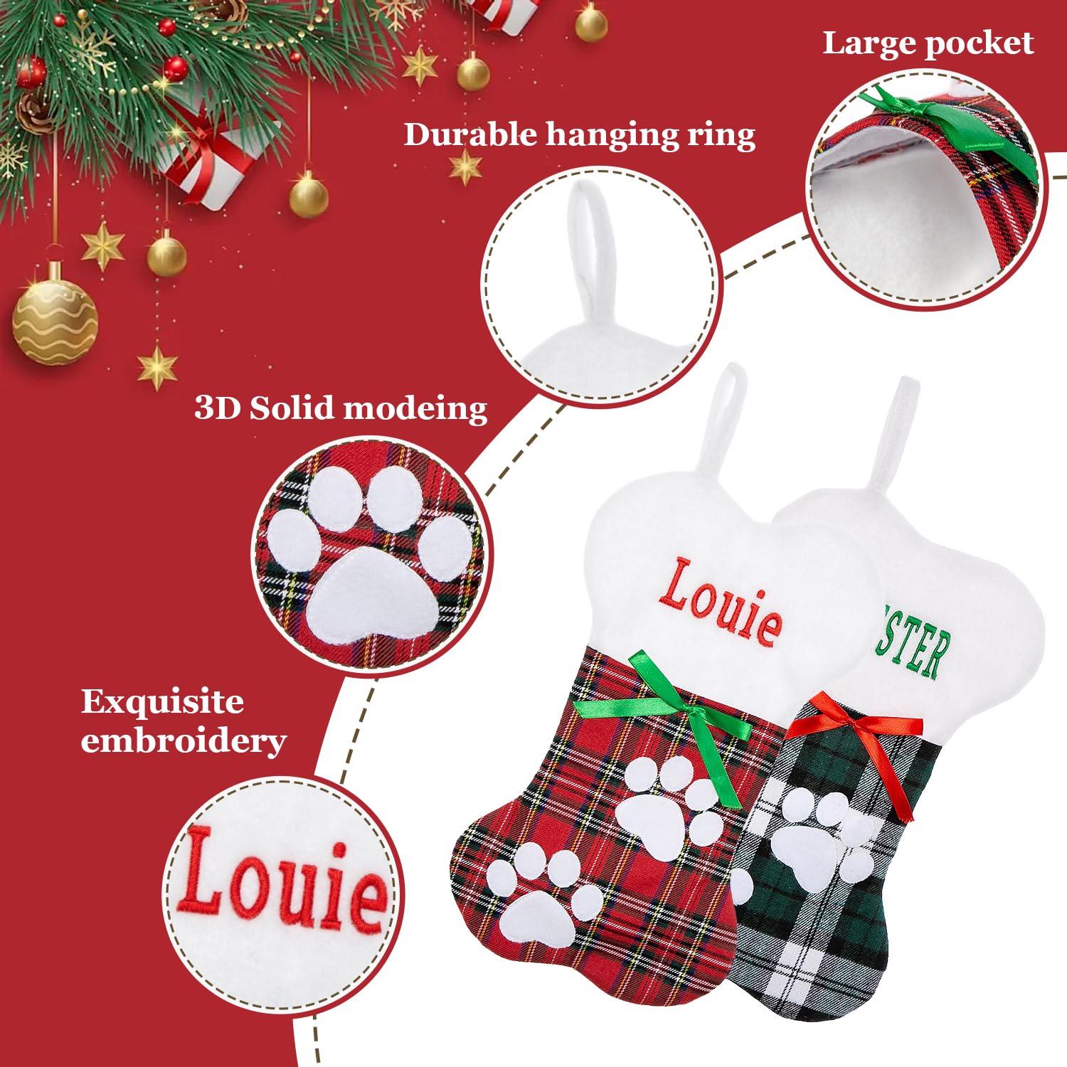 Elles apportent une touche festive à votre intérieur tout au long de l'année et vous accompagnent fidèlement, vous et votre compagnon à quatre pattes. Personnalisez-la pour la rendre unique et spéciale. Utilisation pour suspendre dans différents scénarios : nos chaussettes de Noël pour animaux domestiques sont dotées de boucles de suspension pratiques, ce qui permet de les accrocher facilement aux sapins de Noël, aux cheminées, aux escaliers, aux portes, aux couloirs, aux fenêtres, aux murs, aux étagères et aux balustrades. Matériaux de haute qualité : nos chaussettes de Noël en forme d'os pour chien sont fabriquées à partir de jute et de coton de haute qualité, ce qui les rend à la fois résistantes et réutilisables. Kiera Grace Horloge murale décorative surdimensionnée 30 pouces, marron foncé avec cadran Décorations de Noël personnalisées et uniques : cette chaussette de Noël a la forme d'un adorable os pour chien et est dotée d'un nœud et d'un anneau solide. Dimensions : 42 x 26 centimètres (longueur et largeur). Montre surdimensionnée Maren de ton or rose avec bracelet en cuir gaufré à motif de crocodile... Vous pouvez faire graver le nom d'un membre de votre famille ou de votre chien adoré sur la chaussette de Noël et lui offrir ainsi un cadeau de Noël vraiment unique. Caractéristiques du produit : Matériau : jute, coton. Pour tous les amoureux des animaux qui souhaitent offrir une surprise festive unique à leur compagnon à quatre pattes, elle répond à toutes vos exigences en matière de fêtes et de cadeaux. Chaussette Chien Chaussette De Noël Pour Chien Avec Nom Personnalisé Pour Sapin De Noël, Cheminée, Décoration De La Maison Décoration Sapin Cheminée Os Personnalisable COLLIER16-M--Collier ajustable pour chien, Style japonais, mouchoir avec nœud papillon, cloche... Le cadeau de Noël idéal : cette décoration personnalisée en forme de chien est le cadeau de Noël parfait.