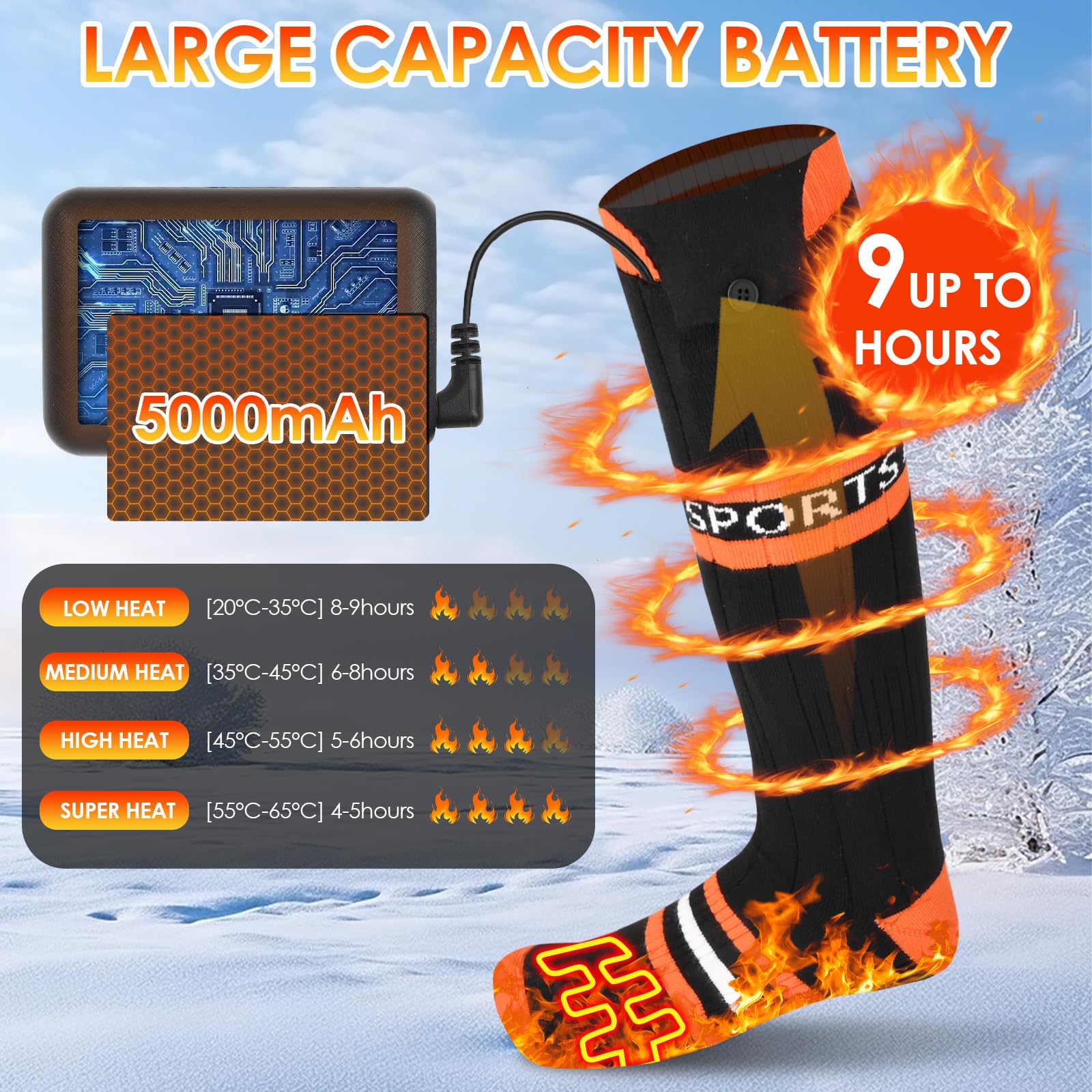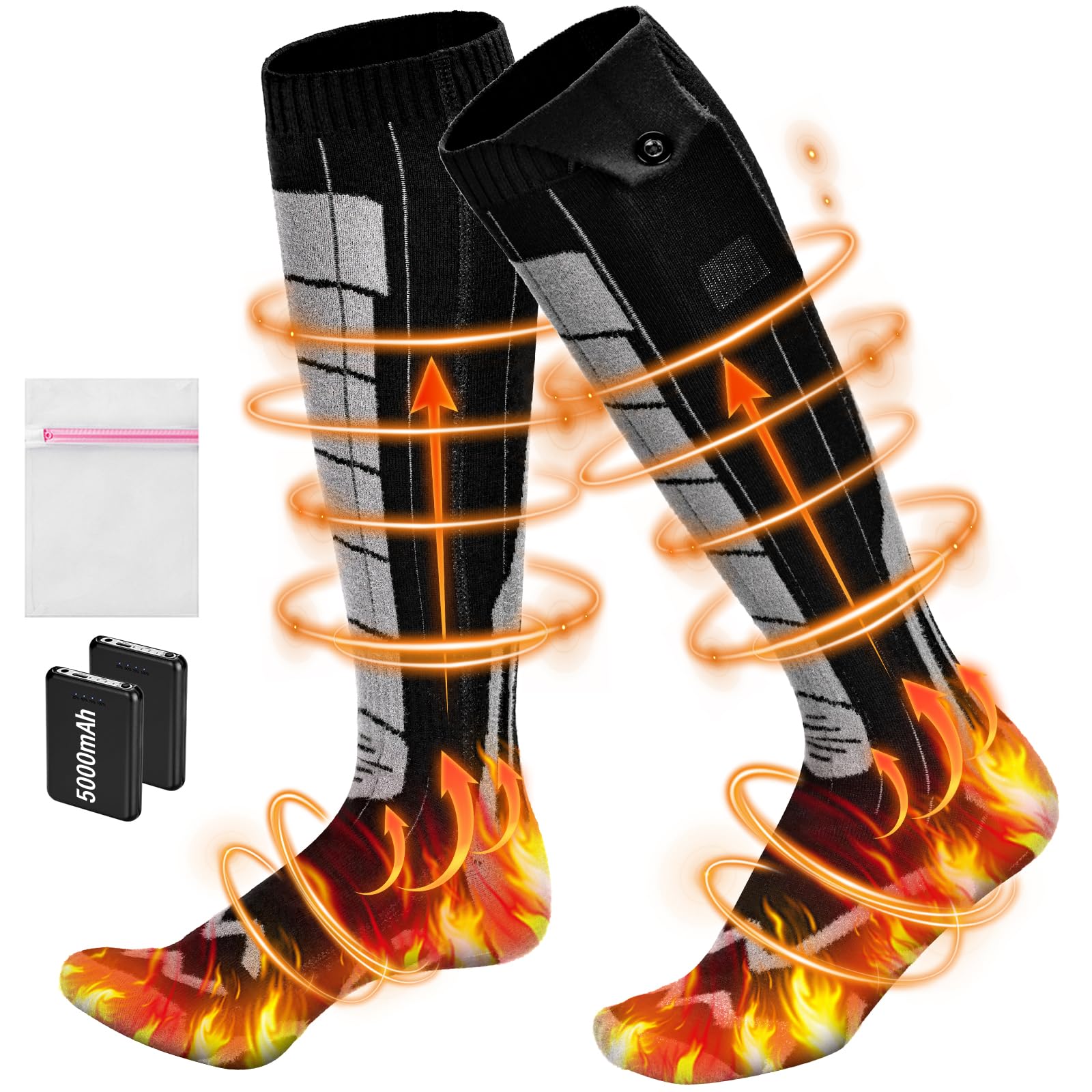 Convient à tous les types de sports de plein air d'hiver ou de travail, vous pouvez chasser, camper, skier, grimper, faire de la randonnée, vous garder au chaud pendant l'hiver froid., EU 36-46 tout ok. Chaussette Chauffante Homme WUEAOA Chaussettes Chauffantes, Femme, Chaussettes Thermiques à Batterie Pour Hommes & Femmes, Lavables En Machine, Parfaites Pour Chasse, Ski (Taille Unique Chaussettes Ski Chasse Randonnée Pour les sports de plein air, chauffage thermique pour la chasse, le camping, le ski, la randonnée, la pêche, l'équitation, la moto, 5000 mAh. Que vous soyez à la maison, au bureau ou en déplacement, il vous suffit de connecter les chaussettes à une source d'alimentation et de profiter de la chaleur apaisante qu'elles procurent 【Haute élasticité et lavable en machine】 Ces chauffe pied peuvent être lavées à la main ou en machine. Assurez-vous de mettre les chaussettes chauffantes dans le sac à linge inclus avant le lavage en machine. Chaussettes chauffantes pour homme et femme, rechargeables et lavables, batterie de 5000 mAh avec 4 niveaux de chauffage, chaussettes d'hiver chaudes pour le ski, la chasse, la moto, le travail en plein air, le camping, la pêche, la randonnée La tension de sortie de la batterie est de 5V, ce qui est bien inférieur à la tension de sécurité du corps humain. 【Batterie 5000mAh et 4 températures】 Les chaussettes sont alimentées par une batterie rechargeable de 5000mAh, qui peut durer 2-3 heures sur le réglage de chaleur le plus élevé et 7-8 heures sur le réglage de chaleur le plus bas, répondant aux besoins des sports d'hiver en plein air à court terme. Ne les essorez pas à la main. WUEAOA Chaussettes Chauffantes, Chaussette Chauffante Homme Femme Les 4 niveaux de chauffage correspondent respectivement à 35/45/55/65 ℃, et le contrôle constant de la température maintient vos pieds confortables tout le temps et favorise la circulation sanguine. Ces chaussettes chauffantes sont spécialement conçues avec un tissu spécial extra doux et respirant au toucher.