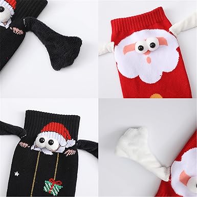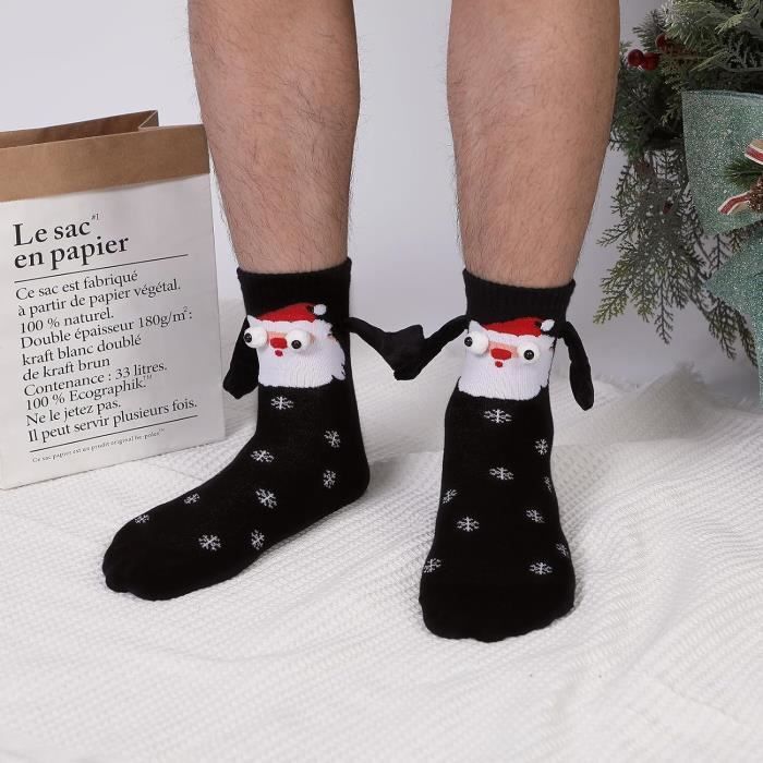 Ils répandent la joie de Noël à tout le monde autour de vous., 4., Matériau et taille : fabriquées en mélange de coton et d'aimants, les quatre paires de chaussettes magnétiques que vous recevrez sont extensibles et unisexes, s'adaptent à la plupart des tailles de pieds et conviennent aux deux sexes. Vous pouvez vous tenir la main avec vos proches et rendre la période de Noël encore plus spéciale. Ils répandent la joie de Noël à tout le monde autour de vous. Ils apportent beaucoup de joie et de sens du jeu à votre garde-robe., 3., Chaussettes de Noël festives : ces chaussettes sont faites pour ceux qui veulent profiter pleinement de la période de Noël. Chaussettes de Noël | Objets de Noël Les chaussettes se tirent magnétiquement, tout comme vous et votre amoureux, et sont idéales pour partager avec votre conjoint, petite amie, petit ami, amis et plus encore., Ils sont un Vous pouvez vous tenir la main avec vos proches et rendre la période de Noël encore plus spéciale., 2., Design 3D divertissant : ces chaussettes ont un design unique tenant la main et un œil 3D spécial. chaussettes de noël à l'aquarelle avec des cadeaux, éléments de style... Avec un design chic au milieu, elles complètent n'importe quelle tenue et offrent un confort respirant tout au long de la journée. 1., Chaussettes avec mains magnétiques : vous cherchez un moyen amusant et unique pour que les couples, les amis et les meilleurs amis restent proches les uns des autres pendant la période de Noël ? Ces charmantes chaussettes pour couples sont une option adorable. Ils apportent beaucoup de joie et de sens du jeu à votre garde-robe. Lot De 2 Paires De Chaussettes Magnétiques Amusantes Avec Bonnet De Père Noël Et Sapin De Noël Pour Homme Et Femme Chaussettes Noël Magnétiques Chaussettes magnétiques pour soulager la douleur articulaire et... Matériau et taille : fabriquées à partir d'un mélange de coton et d'aimants, les quatre paires de chaussettes magnétiques que vous recevrez sont extensibles et unisexes, s'adaptent à la plupart des tailles de pieds et conviennent aux deux sexes.