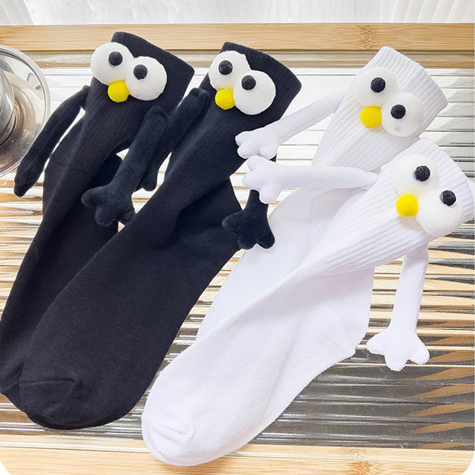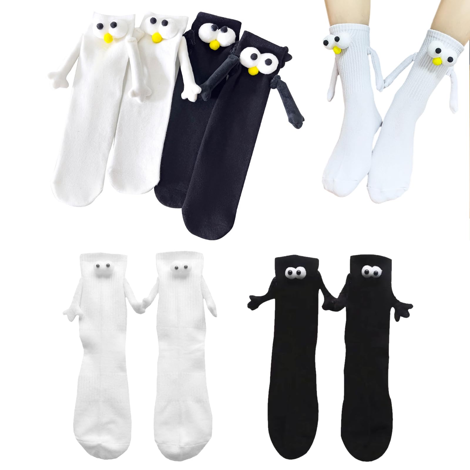 MIYUANGKJ Lot de 4 paires de chaussettes magnétiques pour 【Matériau de qualité supérieure et confortable】 Fabriquées à partir d'un mélange de coton et de polyester de haute qualité, ces chaussettes offrent douceur, respirabilité et durabilité pour un usage quotidien. Idée Cadeau Original Amoureux 4 Paires De Chaussettes Magnétiques Pour Couples Noir Et Blanc, Design Chaussettes Fun Relation Conçues pour durer, nos chaussettes sont le cadeau parfait pour exprimer l'amour et l'unité. Couleur: noir et blanc Taille de l'emballage: 22,00 x 11,00 x 6,00 cm Poids du produit: 240 grammes Taille: Taille unique, 35 à 43 yards Matière: Polyester, coton Catégorie: Neutre Quantité: 4 paires (2 paire noire, 2 paire blanche) Caractéristiques: Chaque paire de chaussettes magnétiques a une paire d'yeux tridimensionnels et une paire de bras avec des aimants en haut des bras, les... Ajustement Confortable: Les chaussettes magnétiques sont fabriquées en coton extensible et sont disponibles en tailles unisexes pour s'adapter à la plupart des... Leur style unisexe les rend adaptés aussi bien aux hommes qu'aux femmes. La combinaison parfaite pour garder vos pieds à l'aise en toute saison. 【Cadeau idéal pour les couples】 Que ce soit pour un anniversaire, la Saint-Valentin ou comme cadeau spontané, ces chaussettes magnétiques sont un cadeau original et affectueux pour votre partenaire. La particularité des mains magnétiques qui s'attirent permet de sentir votre partenaire proche, même à distance. 【Connexion magnétique innovante】 Equipées de petites mains magnétiques qui s'attirent, ces chaussettes permettent aux couples de se sentir connectés d'une manière unique et amusante. Découvrez une nouvelle façon de rester connecté avec votre partenaire avec notre pack de 4 paires de chaussettes magnétiques.