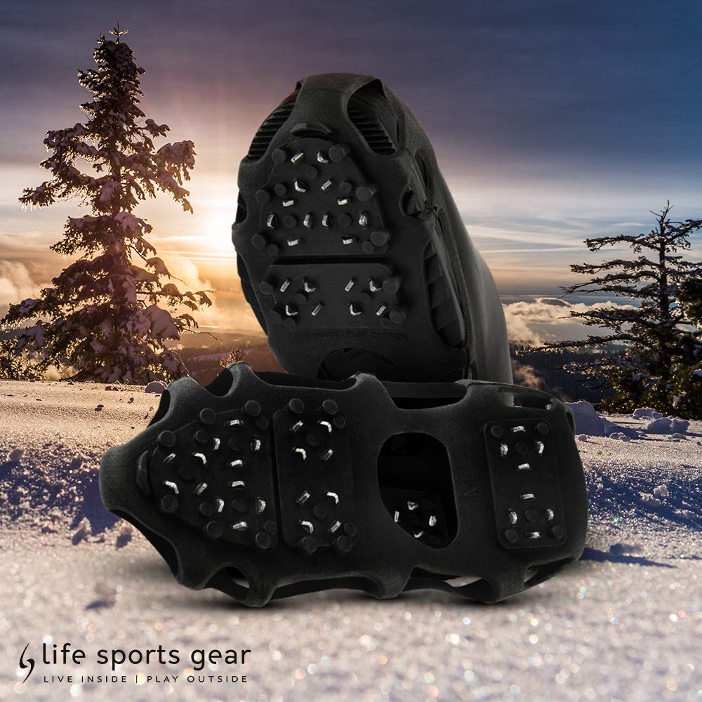 Crampons antidérapants universels] : Compatibles avec tous types de baskets, chaussures de randonnée, etc., ces crampons offrent une adhérence optimale sur les routes verglacées. Marchez, courez ou randonnez en toute confiance.[8 pointes en acier] : Fabriqués en caoutchouc, ces crampons sont dotés de 8 pointes en acier trempé. Taille unique, légers et faciles à transporter... Résistance des matériaux: les crampons des semelles antidérapantes sont en ferroalliage, tandis que les composants restants sont en silicone résistant. Maintien sûr : il peut fournir une excellente adhérence, vous permettant de réduire efficacement les glissades et les chutes sur la glace, la neige et d'autres terrains et d'obtenir suffisamment de sécurité. Chaussure Antiderapant Crampons Neige Crampons, Taozoey Crampons Pour Chaussures Antidérapant Avec 11 Crampons, Antidérapants, Et Glace Pour Hiver Randonnée Pêche Marche Escalade Alpinisme Crampon Anti Glisse Pour Chaussure Crampons Neige Glace Universels Réglables En hiver, terrains accidentés, allées glacées, herbe mouillée et utilisation quotidienne, pêche sur glace, chasse, marche, jogging, randonnée, course, pelle à neige, randonnée pédestre, randonnée pédestre, randonnée à neige et bien plus encore, pour vous offrir la sécurité. Parfait pour les activités de plein air : idéal pour la marche, la randonnée, l'escalade, la pêche sur glace ou d'autres activités de plein air, ces pics antidérapants sont un accessoire indispensable pour tous ceux qui passent du temps à l'extérieur en hiver Taille réglable : les crampons mesurent 16 x 6,3 cm et disposent de sangles réglables qui s'adaptent à n'importe quelle pointure et assurent un ajustement confortable. Accessoire Antidérapant Chaussures Bottes Crampons Antidérapants HONYAO - Pointes Acier Pour Neige Et Glace, Taille XL Crampons Randonnée
