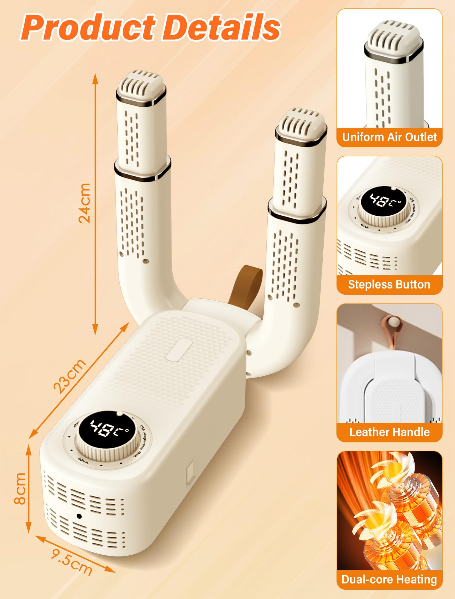 Appareil Auditif Aissom Sèche Chaussures, Chauffe-Bottes, Seche Chaussure Appareil Séchage Chaussures Antibactérien Seche Chaussure Electrique, Seche Chaussure de Ski, Seche Bottes 3 réglages de minuterie] : Sèche-Gants et Chauffe-bottes dispose de 3 réglages de minuterie, vous n'avez pas besoin d'attendre longtemps dans les 60/90/120... Séche-Chaussures De Ski adopte un matériau PP ignifuge et résistant à la chaleur, qui ne brûle pas et ne se déforme pas pendant l'utilisation, et peut être utilisé en toute confiance. 【3 réglages de minuterie】 : Sèche-Gants et Chauffe-bottes dispose de 3 réglages de minuterie, vous n'avez pas besoin d'attendre longtemps dans les 60/90/120 minutes, il s'éteindra automatiquement après la fin, ce qui est sûr, silencieux et très simple et pratique à utiliser. 【Pliage flexible à 90°】: La conception pliable à 90° de Seche Chaussure de Ski est petite et portable et ne prend pas de place. 【Circulation d'air chaud à 360°】: Seche Chaussure adopte un élément chauffant à double cœur et une technologie de convection thermique, un air chaud tridimensionnel à 360°, une convection de circulation d'air chaud à température constante, un séchage de la pointe au talon sans coins morts. Il peut également être mis dans un sac à dos avec des lacets lors de vos déplacements. Il est également très approprié pour les gants, les chapeaux et les chaussettes, etc. Remarque : le temps de séchage spécifique dépend du degré d'humidité. Sèche-Bottes Électrique, Sèche-Chaussures, Sèche-Gants, Chauffe-Bottes...