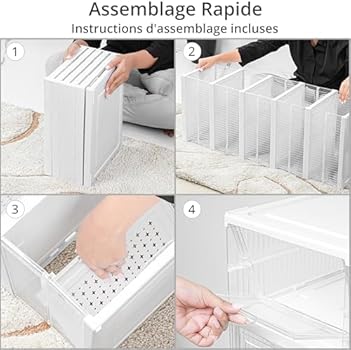 Boites à chaussures empilables au meilleur prix | Leroy Merlin Design empilable : rangement de boîtes à chaussures Les clips et rainures spécialement conçus en bas et en haut permettent un empilage stable sur plusieurs niveaux, ce qui maximise le stockage vertical et économise de l'espace au sol et permet au produit d'être placé de manière flexible dans différents types de grands et petits espaces Boîtes Rangement Chaussures Transparentes TanjcXliu Lot De 20 Boîtes à Chaussures Empilables - Rangements à Chaussures Fermés - Boîtes De Rangement Transparentes Empilables Boîtes Transparentes Clipables Forte capacité de stockage : la combinaison de 20 organisateurs de chaussures peut répondre à presque tous vos besoins de stockage de chaussures. Lorsque vous placez des planches sur les boîtes empilées, vous pouvez également ranger des clés et d'autres objets. TanjcXliu Lot de 20 boîtes à chaussures empilables - Rangements à chaussures fermés - Boîtes de rangement transparentes empilables : : Cuisine et MaisonÀ propos de cet article Empilables librement : avec le système de fermeture à clip, elles peuvent être empilées fermement vers le haut et vers le bas et reliées côte à côte pour créer différentes formes sans se séparer... En outre, vous pouvez y ranger un grand nombre d'articles de vie et d'apprentissage pour soulager votre placard. Léger et pliable : ils peuvent être pliés pour un rangement et un transport faciles lorsqu'ils ne sont pas utilisés. Facile à installer : les plis déjà fabriqués, la construction simple, le diagramme d'installation étape par étape et la vidéo d'installation vous permettent de consacrer moins de temps et d'efforts à l'installation. L'organisateur en polypropylène plus léger vous permet de l'emporter facilement dans n'importe quelle pièce pour répondre à ses besoins de rangement et de décoration.