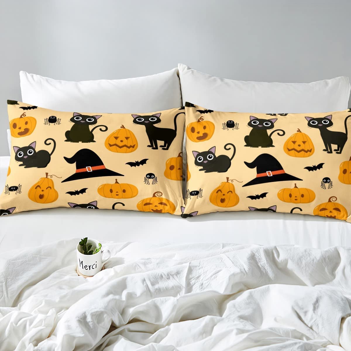 Parure De Lit Halloween CLOXKS Housse De Couette 140x200 Halloween Hibou Chauve-Souris, Design D'impression Doux Parure De Lit En Microfibre 1 Personne Avec Fermeture éclair Et 1 Taie D'oreiller 65x65 Cm Parure De Lit Pour Chien Parure de lit enfant Chat - coton 140x200 cm - Atmosphera créateur d... Homewish Housse de Couette Halloween Coton, Ensemble de Literie Dimensions De La Housse De Couette - 1 housse de couette 140x200cm (sans couette) et 2 taies d'oreiller 65x65cm (sans oreillers) Housse de Couette Halloween Chat Noir - Fermeture éclair cachée - 140x200cm - 100% Microfibre · Plus produit : Entretien facile et séchage rapide · Type de fibre... Lavage - La housse de couette peut être lavée en machine ou à la main, repasser à basse température, sécher au sèche-linge, ne pas utiliser d'eau de Javel Choisissez notre couette en duvet pour vous apporter du confort, vous permettre de dormir confortablement la nuit et de commencer une vie meilleure Cette housse de couette convient au printemps, à l'été, à l'automne et à l'hiver, et convient aux chambres d'hôtes, aux chambres familiales, aux hôtels, aux dortoirs universitaires, etc Taille - Housse de couette 90x190cm + 2 taie d'oreiller 65x65cm Housse de couette 140x200cm + 2 taie d'oreiller 65x65cm Housse de couette 200x200cm + 2 taie d'oreiller 65x65cm Housse de couette 220x240cm + 2 taie d'oreiller 65x65cm Housse de couette 240x260cm + 2 taie d'oreiller 65x65cm Instructions De Lavage - 1., Lavable en machine ou à la main, veuillez fermer la fermeture éclair avant le lavage 2., Ne pas javelliser 3., Repassage à basse température, séchage par culbutage Conseils Aimables - 1., Cette parure de lit ne comprend pas la couette et les oreillers, nous vendons des housses de couette et des taies d'oreiller 2., Veuillez prévoir une erreur de 1 à 3 cm en raison de la mesure manuelle 3., En raison des différents éclairages des moniteurs, la couleur réelle peut varier légèrement par rapport aux images Il existe de nombreux modèles parmi lesquels choisir, améliorant la mode et l'atmosphère artistique de votre maison Vous pouvez donner à votre pièce un aspect neuf à chaque saison en une seule étape.