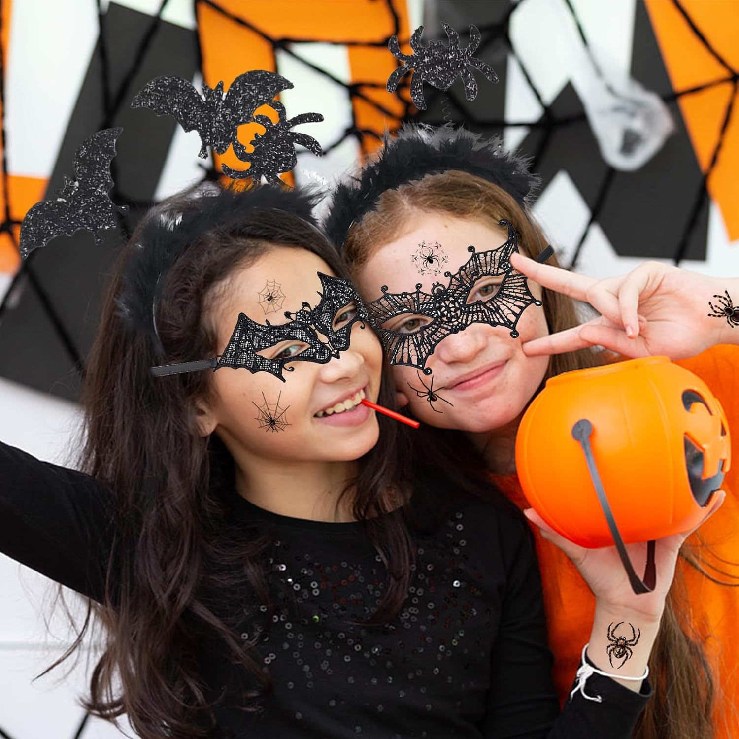 Leonshco Ensemble de serre tete halloween 26 pièces, 2 serre tête Tatouage Autocollant Halloween Serre Tete Chauve Souris Enfant, Serre Tête Halloween Femme, Serre Tête Déguisement Araignée Femme Serre-tête Chauve-souris Halloween Adulte - accessoires Le serre tête d'Halloween a un design unique qui est très différent et l'araignée et la chauve-souris s'intègrent parfaitement au thème d'Halloween. Description de (E)Serre-tête d'Halloween en toile d'araignée, décoration de chauve-souris en dentelle, décoration de Matériau de haute qualité - Nos chouchous d'Halloween sont fabriqués en gaze noire et en alliage, sûrs et durables, imprégnés de l'esprit d'Halloween, parfaits pour vos costumes et cosmétiques d'Halloween Les serre tête araignée chauve-souris sont polyvalents et peuvent être utilisés non seulement pour les fêtes d'Halloween et de Carnaval, mais aussi pour les fêtes à thème, les fêtes déguisées et bien plus encore. Le serre tête araignée et chauve-souris peut être facilement assorti à une variété de tenues d'Halloween, et avec l'autocollant tatouage araignée, il peut vous aider à compléter facilement votre costume d'Halloween avec une atmosphère très effrayante.