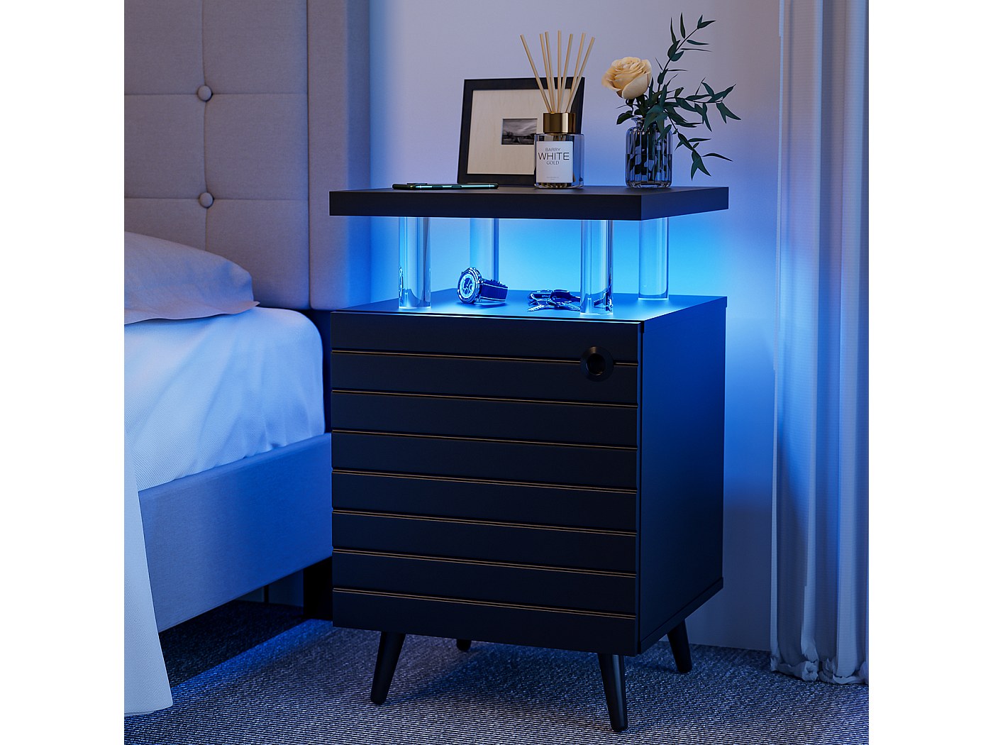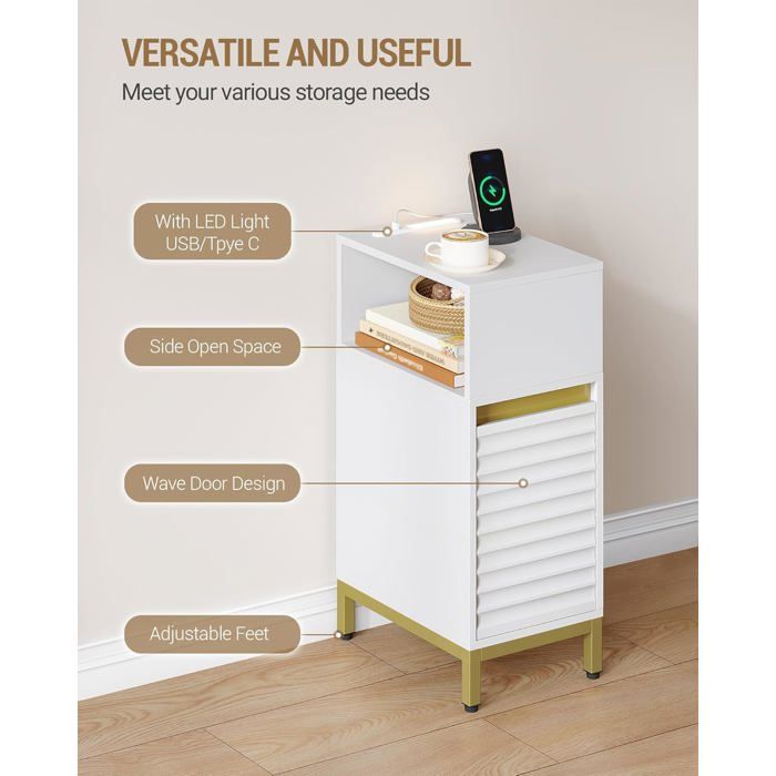 Table de Chevet étroite avec éclairage LED réglable 2024, Table Moderne avec Port USB et Station de Charge latérale, idéale pour la Chambre à Coucher ou Le... FEEOHOME table de chevet Multifonctionnel avec Espace de rangement Dans le salon, elle peut servir de table d’appoint pour exposer des décorations ou poser une tasse de café. Son emballage compact facilite le transport, et sa conception simplifiée permet une assemblée rapide et sans difficulté. Design Moderne avec LED et USB : Table de Chevet au design moderne et tendance, avec une finition blanche élégante. Description du produit FEEOHOME table de chevet LED rendent la pièce plus confortable et bien rangée Même sans compétences en bricolage, vous pourrez monter cette table de chevet en peu de temps, vous permettant de profiter rapidement de ses avantages. Lot de 2, Table de Chevet Étroite, Table d’Appoint, avec Elle intègre des LED pour créer une ambiance cosy et moderne dans votre pièce. FEEOHOME Table de Chevet pour Chambre à Coucher, Salon ou canapé Table De Chevet Led Table De Chevet Table D'appoint Nior Avec éclairage LED, Tables De Nuit Table D'appoint étroite Fonctionnelle FEEOHOME Table de Chevet, avec Bande LED Multicolore Réglable Elle dispose de multiples compartiments, incluant des tiroirs et des tablettes, vous permettant de ranger efficacement vos articles personnels, qu’il s’agisse de vêtements, de livres, de sous-vêtements ou de petits accessoires. 1 avec 3 Tiroirs 2 avec 1 Tiroir Multifonctionnel et stable : Cette table élégante ne se limite pas à une utilisation dans la chambre à coucher, elle peut également servir de table d'appoint dans votre salon ou de classeur dans votre bureau Que ce soit le plateau ou les tiroirs, chaque composant est conçu pour résister à l’usure quotidienne, assurant une longue durée de vie. Idéal pour les personnes qui aiment organiser leurs affaires et optimiser l’espace disponible. N'hésitez pas à nous contacter pour toute question ; nous vous apporterons une réponse satisfaisante. Transport et Installation Pratiques : Table de Chevet offrant un transport et une installation pratiques. Chaque objet trouvera sa place, assurant l’ordre et la clarté dans votre chambre ou votre salon, même si l’espace est limité. Nous offrons un excellent service après-vente.