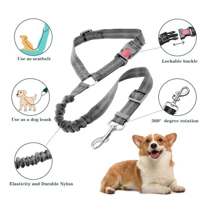 Pawaboo Harnais Voiture pour Chiens, Laisse Chien pour Voiture Durable en Nylon + PVC, Ceinture Chien Voiture Laisse Ceinture De Sécurité Pour Chien/Chat/Harnais Animaux De Compagnie Pour Les Sièges De Harnais Voiture Chien La laisse dispose d'un embout métalique qui se clipse dans les embouts de sécurité de la voiture. La longueur est réglable de 50 à 75 cm pour s'adapter aux petits comme aux grands chiens. Votre petit compagnon pourra se déplacer librement sans vous distraire Le forfait comprend 1 x Ceinture de sécurité pour voiture Ceinture Sécurité Chien Voiture, 3 en 1 Laisse Chien réglable de... Bretelles réglables pour s'adapter à la plupart des animaux de compagnie - Chiens, chats, ect. Longueur: 45-75 cm (environ) , Largeur: 2., 5cm