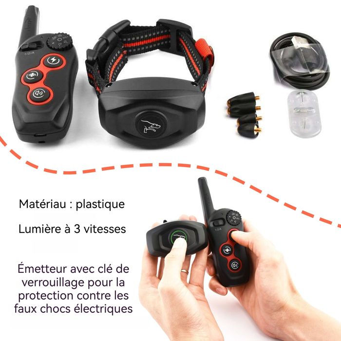 Collier Anti Aboiement Chien Automatique, 8 Niveaux de Collier Anti Aboiement Chien Collier Pour Chien, Contrôle Intelligent Des Aboiements, 3 Modes De Choc Statique Vibration Son Noir 99189326 Collier Détection Aboiements 8 Niveaux Le probléme des aboiements de votre chien... Que faire ? - ICI Description du produit Spécifications du produit – Collier Anti-Aboiement Chien Nom du produit : Collier Anti Aboiement Petit Chien Fonction principale : Réduction des aboiements excessifs grâce à un système de détection intelligente Modes de correction : Son uniquement Vibration uniquement Son + Vibration Son + Vibration forte (mode renforcé) Niveaux de sensibilité : 8 niveaux réglables, pour s'adapter à la réactivité de chaque chien Technologie de détection : Capteur intelligent double (vibration des cordes vocales + son) Système de sécurité : Mode de protection automatique après 7 déclenchements consécutifs (pause de 60 secondes) Taille du collier : Réglable de 3 à 18 cm (idéal pour chiens pesant entre 2,7 kg et 68 kg) Poids du collier : 130g Matériau de la sangle : Nylon souple et résistant Alimentation : Batterie lithium-polymère rechargeable (300 mAh) Autonomie : Jusqu’à 15 jours par charge complète Temps de charge : Environ 2 heures Étanchéité : IP67 – résiste à la pluie, la boue et les éclaboussures Utilisation recommandée : Pour petits, moyens et grands chiens (intérieur et extérieur) Contenu de la boîte : 1 x Collier anti-aboiement 1 x Câble de chargement USB 1 x Manuel d’utilisation (en français) Mode d'emploi Allumez le collier avant chaque sortie ou période d’entraînement. Collier Anti Aboiement Chien, 4 Modes Son/Vibration/Choc Electrique, Réglable 8 Niveaux de Sensibilité, Rechargeable Contrôle Anti-aboiement Intelligent... Une solution idéale pour réduire les nuisances sonores tout en respectant le bien-être de votre chien. Avec 8 niveaux de sensibilité, il capte précisément les aboiements sans être déclenché par des bruits ambiants.