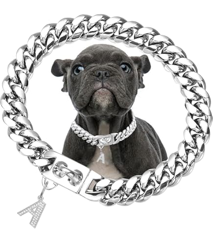 Collier Pour Chien À Maillons Cubains Dorés De 32 Mm – Collier En Collier Pour Chien Taille Moyenne Grande Collier Pour Chien, Torquatus Chromé - Qualité Pro HS. Accessoires Et Sellerie METAL : Collier étrangleur Et Collier Métal Pour Chien Collier Métal Anti-mastication Fabriquées en acier robuste, ces colliers de chain de chaîne de compagnie de 32 mm ofent une durabilité et une résistance exceptionnelles à l'usure... Matériau de haute qualité : fabriqué en acier inoxydable 304 Ce collier chien argenté avec strass offre un look élégant et moderne. Conçu en alliage robuste, largeur de 1,2 cm et plusieurs longueurs (10 à 18 pouces) pour s'adapter parfaitement aux petits chiens ou chats. Son design hip-hop scintillant attire l'attention tout en restant pratique et durable. Surface lisse et polie pour le confort de l'animal, résistant à la rouille et à la... Veuillez mesurer le tour de cou de votre chien et ajouter 1,5 à 2 cm de plus) Taille : largeur de la chaîne : 19 mm, longueur : 35/40/45/50/55/60/65 cm (le collier pour chien n'est pas réglable.