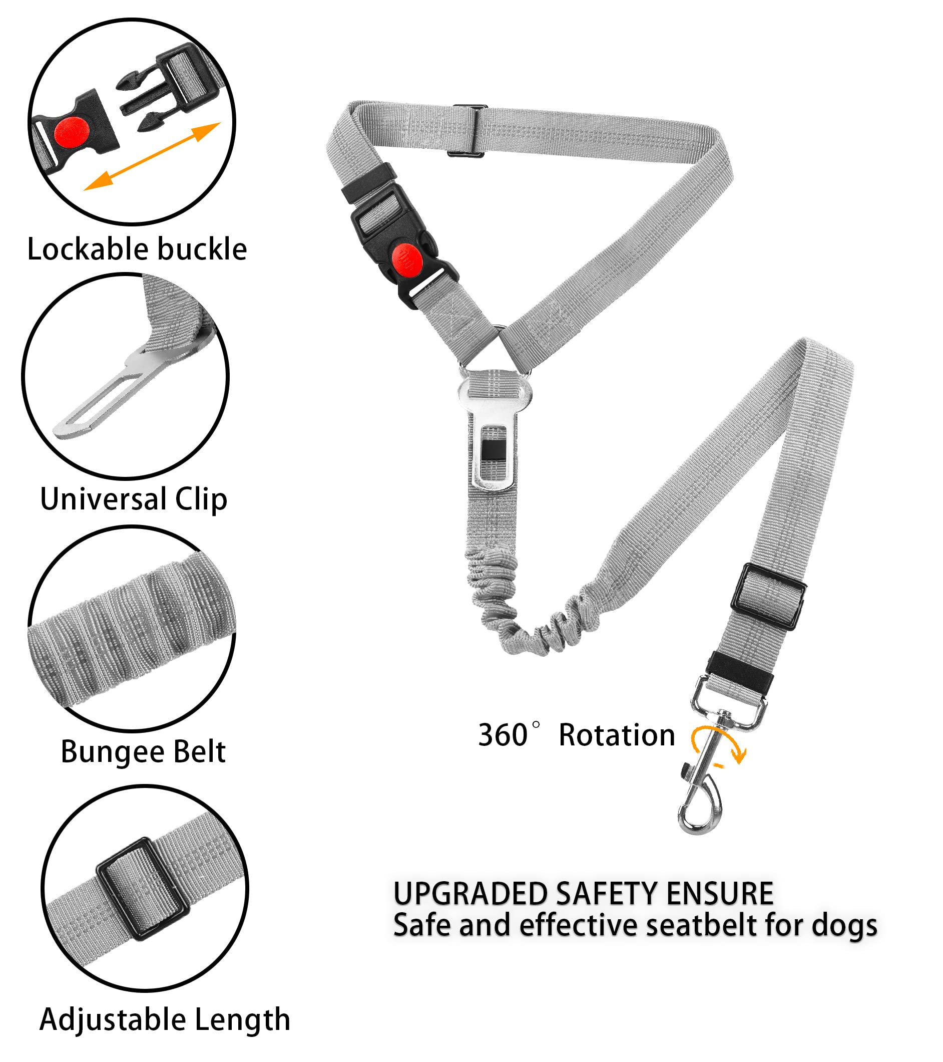 Mode d'emploi Ceinture de sécurité pour chien Ceinture de Sécurité pour Chien Voiture,Ceinture de sécurité pour Chien... 【Mousqueton rotatif 360°】Avec crochet en alliage solide, le harnais de sécurité offre plus de flexibilité. Une fois attachés, vos animaux cessent de se déplacer dans la voiture. Chien Accessoires Ceinture Pour Chien Voiture, 2Pcs Ceinture Sécurité Harnais Pour Chiens Attache Chien Banquette Arrière Convient aux petits, moyens et grands chiens, offrant liberté de mouvement et maintien sûr Conçue spécialement pour les familles avec plusieurs chiens, elle facilite chaque trajet. 【Sécurité double】Cette ceinture pour chien voiture permet d’attacher deux chiens en même temps grâce à son design en Y, évitant qu’ils ne s’emmêlent pendant le trajet 【Compatibilité universelle】Cette ceinture pour chien voiture s’adapte à la plupart des véhicules avec clip de 2 cm. Utilisable sur la banquette arrière ou comme solution dans le coffre Conduire en toute sérénité. Fabriquée pour un usage quotidien, la ceinture se distingue par sa robustesse et sa conception pratique. Attache ceinture pour chien NORAUTO Un accessoire pour toutes les occasions. 【Accessoire pratique】En plus de l’attache chien voiture, un jouet en forme de ballon est inclus pour divertir votre chien, réduire son stress et rendre le voyage plus agréable CCYKXA noir Laisse pour chien Zero Shock pour grands chiens, laisse
