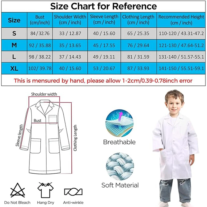 Blouses chimie et tabliers enfants TISSU DE HAUTE QUALITÉ : Les blouses de laboratoire pour garçons et filles sont faites de coton et de polyester respirants et durables, garantissant que la blouse de laboratoire est douce et agréable pour la peau, résistante à l'usure et aux taches, difficile à boulocher ou à rétrécir, et très durable Blouse Chimie College 12 Ans Générique Blouse Chimie Enfant, Fille Garçon Coton Peinture Blouse Chimie école Coton Polyester Une première exploration scientifique pratique pour les garçons ou les filles scientifiques âgés de 5 à 12 ans. Blouse médicale manches longues tranfo 38303T Sur label blouse - label... Achetez Générique Blouse Chimie Enfant, Blouse Blanche Enfant Fille Garçon Coton Blouse Laboratoire Enfant Manche Longue Blouse Medicale Blouse Physique... Idéal comme vêtement de protection pour enfants pour les cours de chimie, les cours de médecine, la peinture, le laboratoire, l'école et le jardinage, peut également être utilisé comme costume de bricolage pour Halloween, les jeux de rôle de carnaval, les soirées à thème, Noël, etc Peut stocker des stylos, des masques, des gants, des ciseaux, etc. CADEAU CRÉATIF : Cet deguisement docteur enfant scientifique/médecin est un cadeau parfait pour les enfants, il peut non seulement cultiver leurs capacités de réflexion et leur créativité, mais également stimuler leur intérêt pour la science, la médecine, les mathématiques, l'ingénierie, et est une bonne aide pour l'apprentissage et la croissance, ensemble pantalon + blouse Cette blouse de médecin est le laboratoire scientifique le plus populaire auprès des enfants et encourage l'amour de l'apprentissage chez les enfants scientifiques pour se déguiser en scientifique et devenir un scientifique pour la fête costumée et la journée des carrières futures à l'école. pour votre commodité lorsque vous faites d'autres choses Idéal pour les médecins, les professionnels de la santé, les scientifiques, les laboratoires, les cours de chimie, l'industrie, la biologie, la médecine, la construction, la peinture, le bricolage ou même pour se déguiser au carnaval.