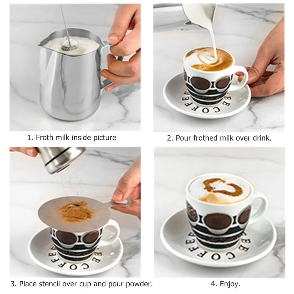 Pochoirs Décoration Café PAR - Shaker à Chocolat Pochoirs à Café En Plastique, Moules De Gabarit Motifs Café Chocolat Pâtisserie Des pochoirs à café pour épater vos amis - Parenthese Café Carafe,Pochoirs à Cappuccino en plastique, 16 pièces, Spray mousse de... L'ensemble présente une variété de motifs adorables, notamment des arbres de Noël, des feuilles d'érable, des soleils, des grains de café, des cœurs, des pandas, des fleurs et bien plus encore, vous permettant de changer vos créations à volonté pour garder votre art frais et excitant. Parfaits pour décorer des cappuccinos, des lattés, du chocolat chaud ou des pâtisseries, ces modèles ajoutent une touche d'élégance et de plaisir à vos boissons et desserts, les rendant parfaits pour toute occasion. ENSEMBLE COMPLET : Cet ensemble comprend 32 pochoirs à café dans une variété de motifs mignons, ainsi qu'un pochoir en anneau pour agrandir son diamètre applicable. Caractéristiques : Placez simplement le pochoir sur votre café ou votre gâteau et tamisez le cacao, le sucre ou la poudre de matcha pour créer facilement de magnifiques designs professionnels. Idéal pour ajouter de la créativité à vos projets de café et de torréfaction. MATÉRIAU DURABLE: Fabriqués à partir de matière plastique et découpés au laser avec précision, ces modèles sont légers, flexibles et réutilisables. NOËL : Cet ensemble de pochoirs présente d'adorables motifs sur le thème de Noël, ce qui en fait un cadeau idéal pour les amateurs de café et les amateurs de pâtisserie. Pochoirs à café en aérosol Eid Mubarak, 6 pièces, pour le Ramadan, pour...