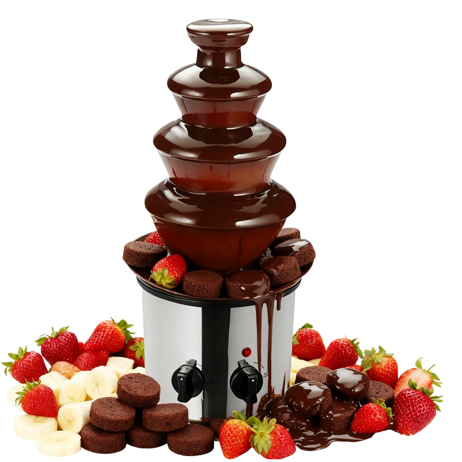 Machine De Fonte De Chocolat, Fontaine À Chocolat Commerciale, Pot De Fusion De Sauce En Acier... [Grande capacité] : la fontaine à chocolat dispose de 4 niveaux qui peuvent contenir jusqu'à 60,86 oz de sauce au chocolat, ce qui répond aux besoins des réunions de famille et d'amis. [Chocolat soyeux] : le moteur indépendant et les boutons de commutation de chauffage permettent une utilisation facile, et le bol chauffant au fond peut contenir beaucoup de sauce, assure un chauffage uniforme, préserve le goût riche du chocolat et vous fournit du chocolat lisse et soyeux qui vous permet de faire couler l'eau dans la bouche. Fontaine Chocolat Chauffante 170W Fontaine À Chocolat Électrique 300W, Fontaine À Chocolat 4 5 6 7 Couches, Machine À Fondre Le Fontaine Chocolat 2 Litres Les ouvertures de refroidissement au fond dissipent la chaleur à temps, assurant ainsi un fonctionnement stable et une plus grande sécurité d'utilisation. Avec ses 4 niveaux en inox, elle peut contenir jusqu'à 1,8L de chocolat – soit presque 61 oz, de quoi régaler tout le monde. Elle chauffe à 40°C pour un... [Performances stables] : le moteur en cuivre pur confère à cette fontaine à chocolat d'excellentes performances, une durabilité accrue et un faible niveau de bruit de fonctionnement. Fontaine à chocolat 6 niveaux, HENDI, 230V/300W, ø370x(H)840mm